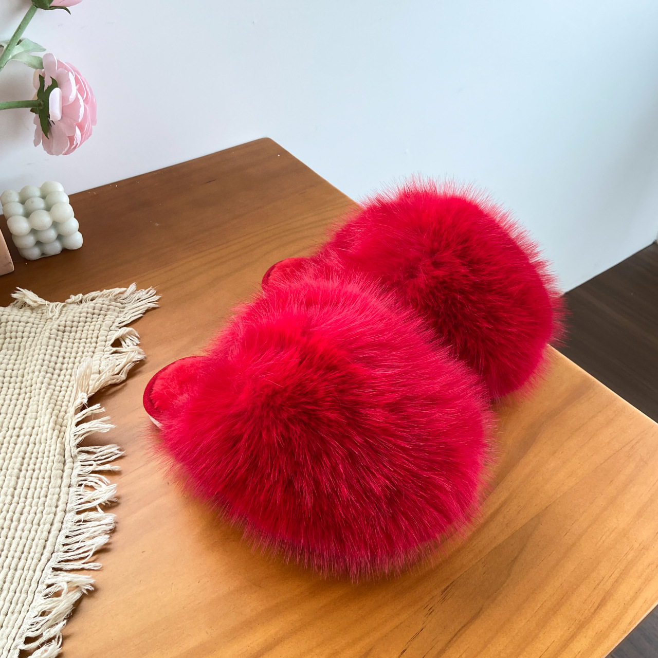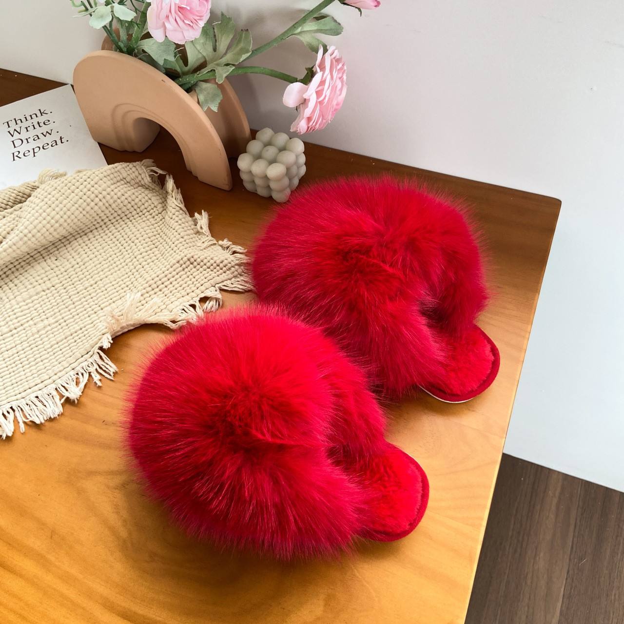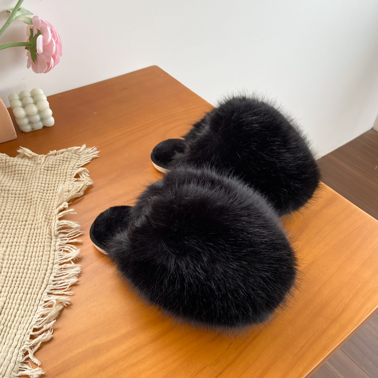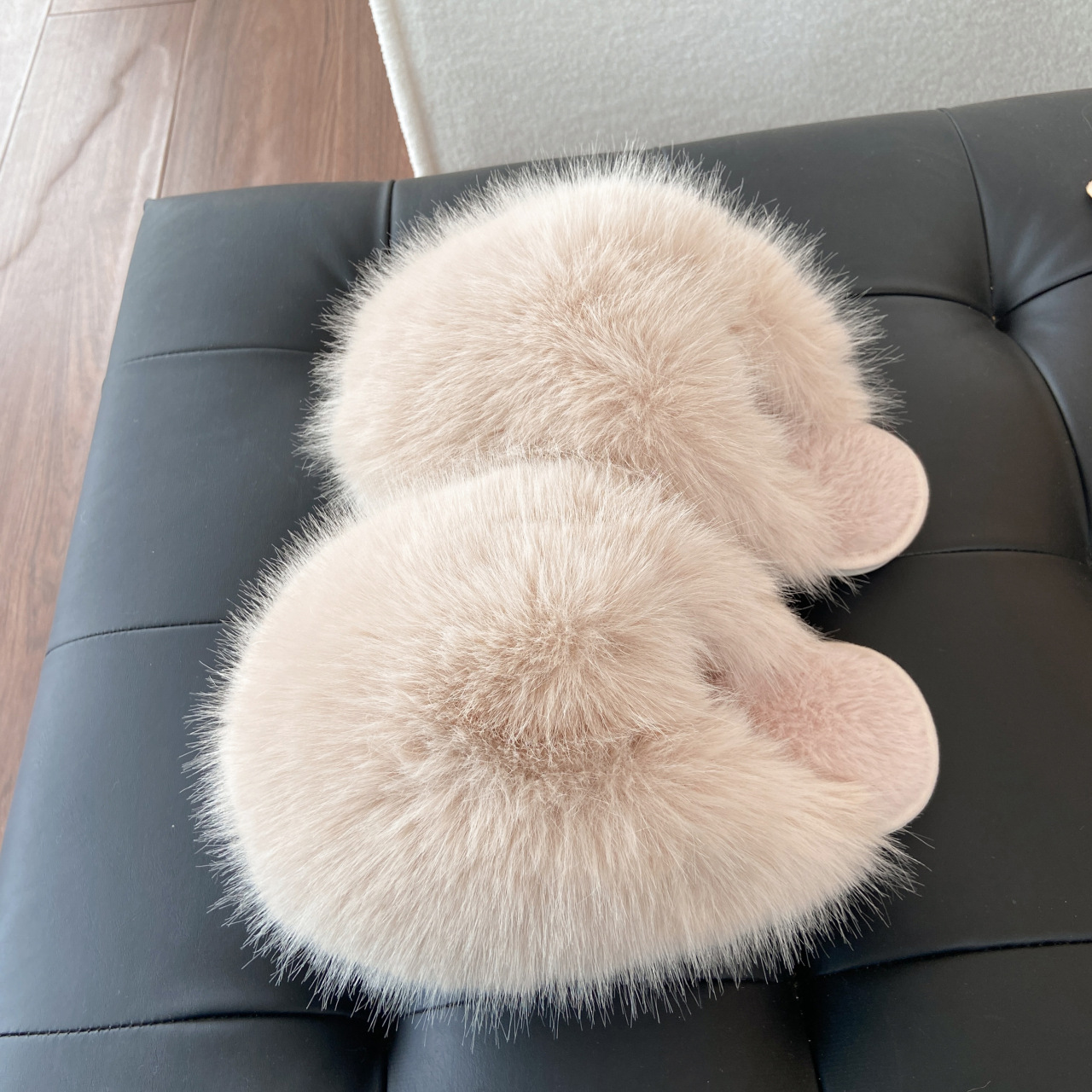ネットセレブ愛用の毛皮スリッパ レディース 2025年秋冬新作 タオル刺繍文字入り 保温性のあるフラットソール モコモコスリッパ 外履き