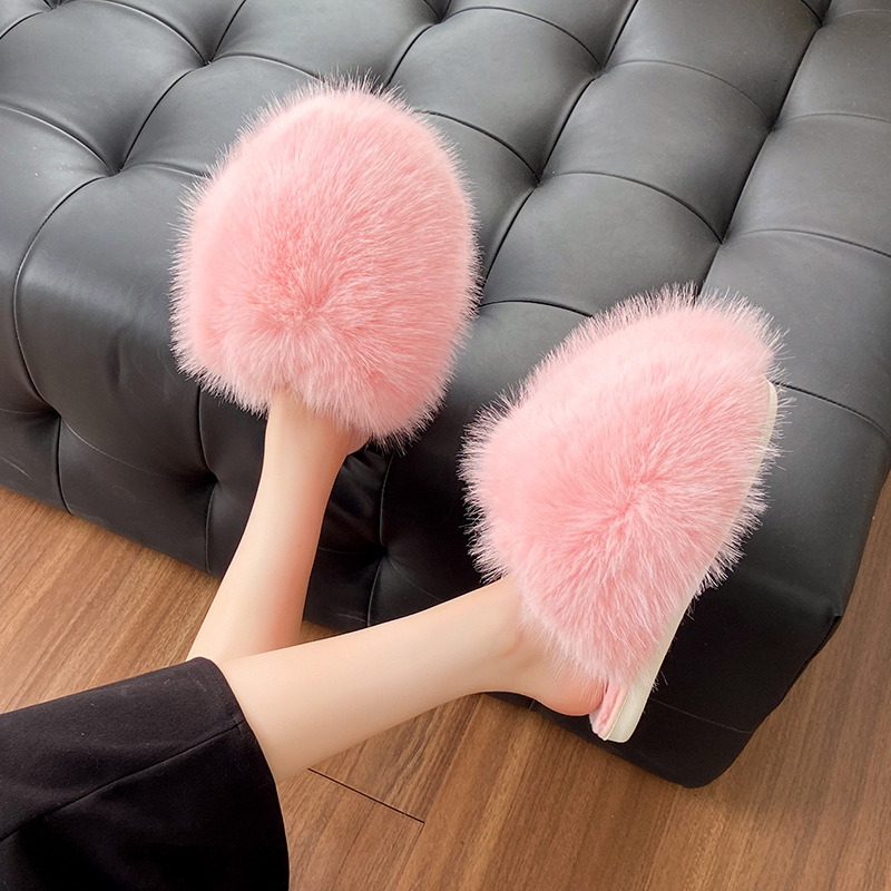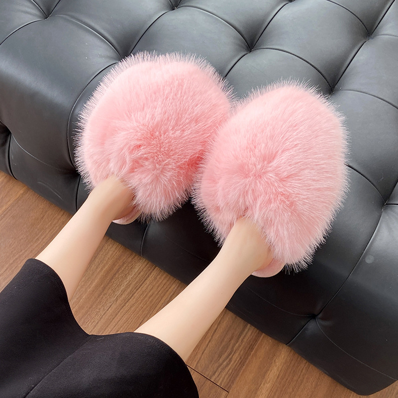 外国貿易のクロスボーダーのぬいぐるみのスリッパの女性欧米の新型の真珠の1字の毛の毛は秋冬の家庭の保温のスリッパの卸売りを引っ張ります。