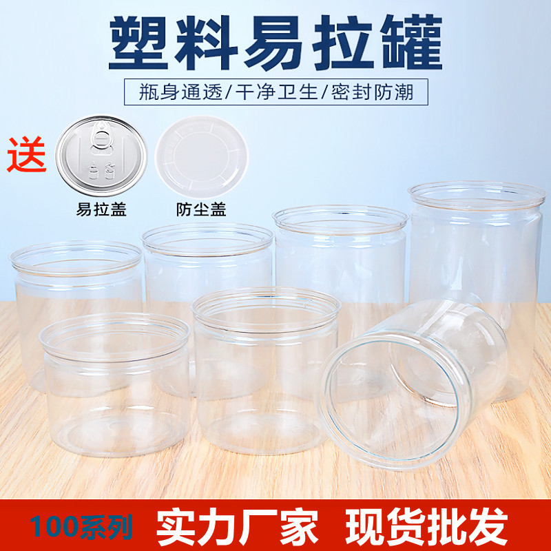 100口径缶ペットボトルペット透明プラスチック缶フラワーティービスケットシリアルスナックキャンディー食品缶