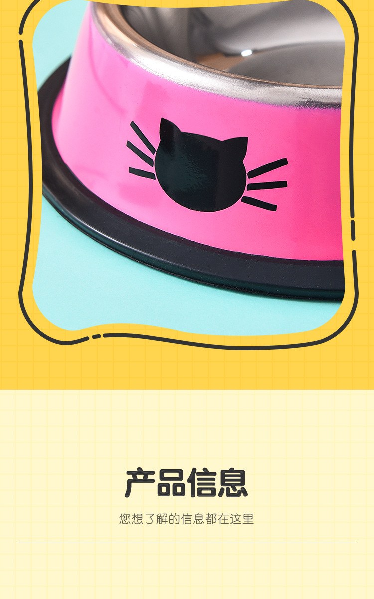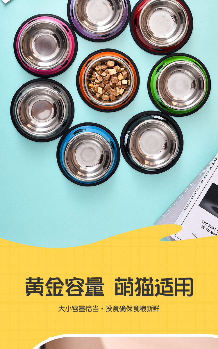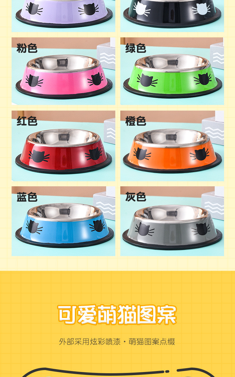 不锈钢宠物碗猫脸印花彩钢狗碗彩色防滑狗食盆猫咪饮水碗厂家批发
