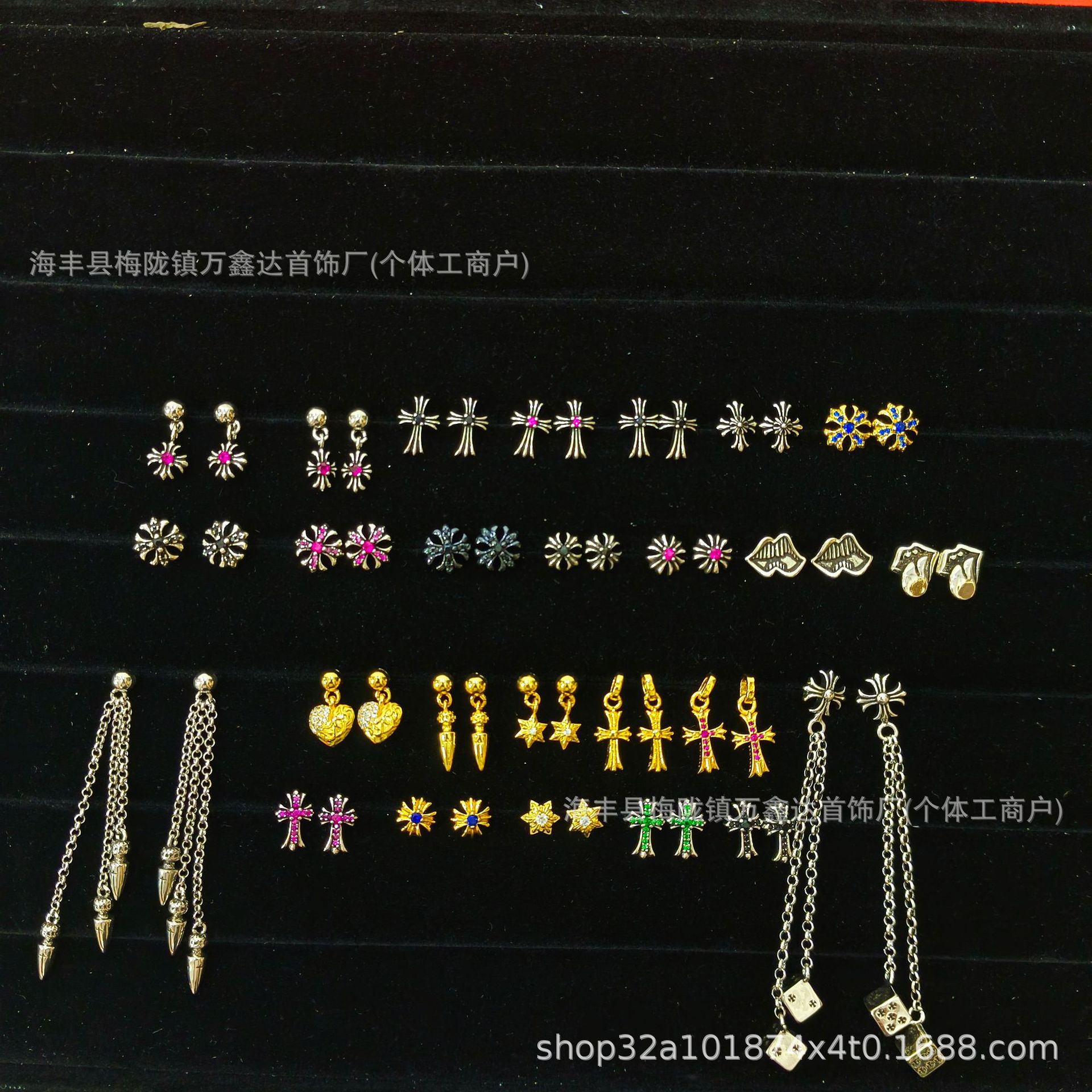 潮牌CHクロは古いレトロな船の錨を作って、十字の花の子供のイヤリングを持って男女925銀の針を集めます。