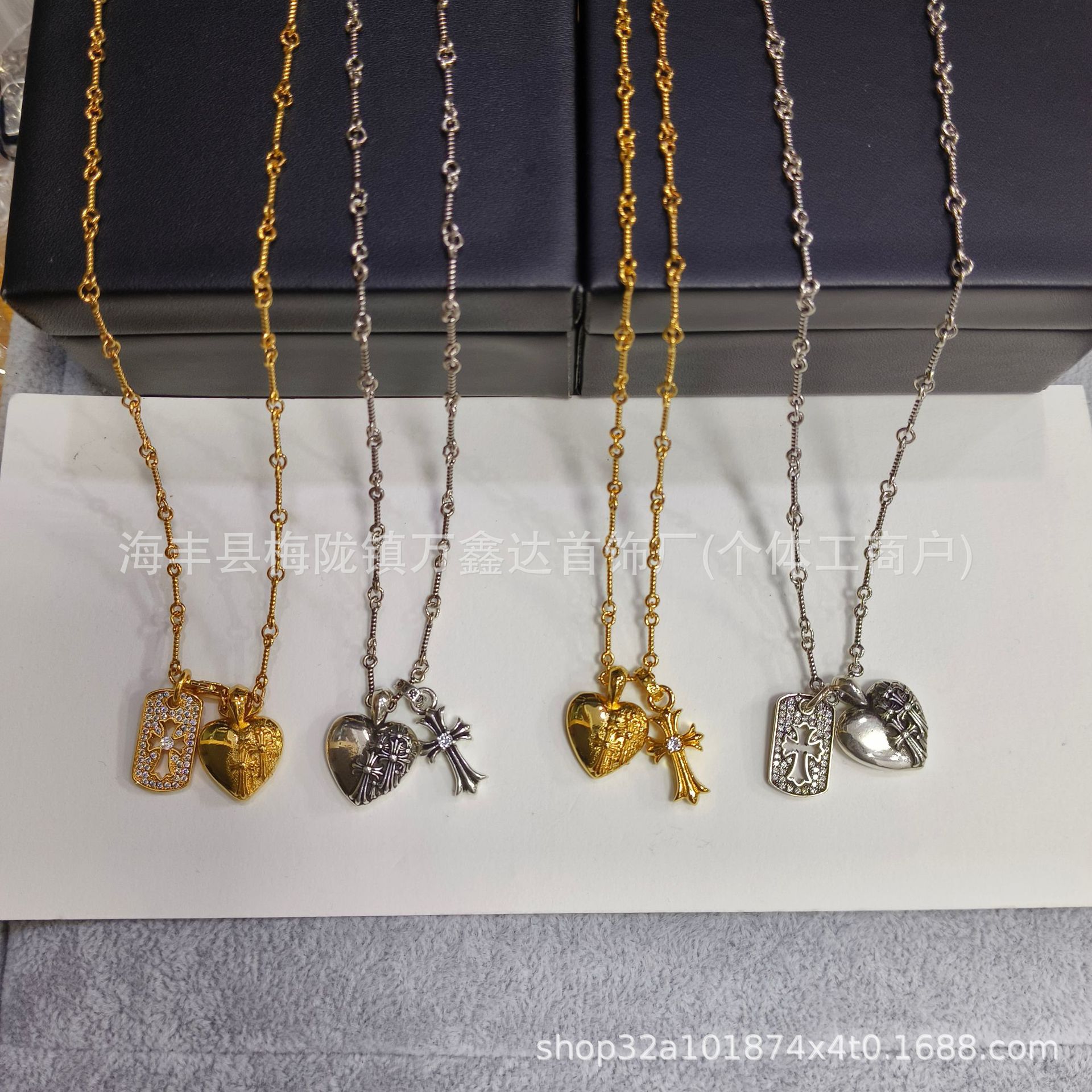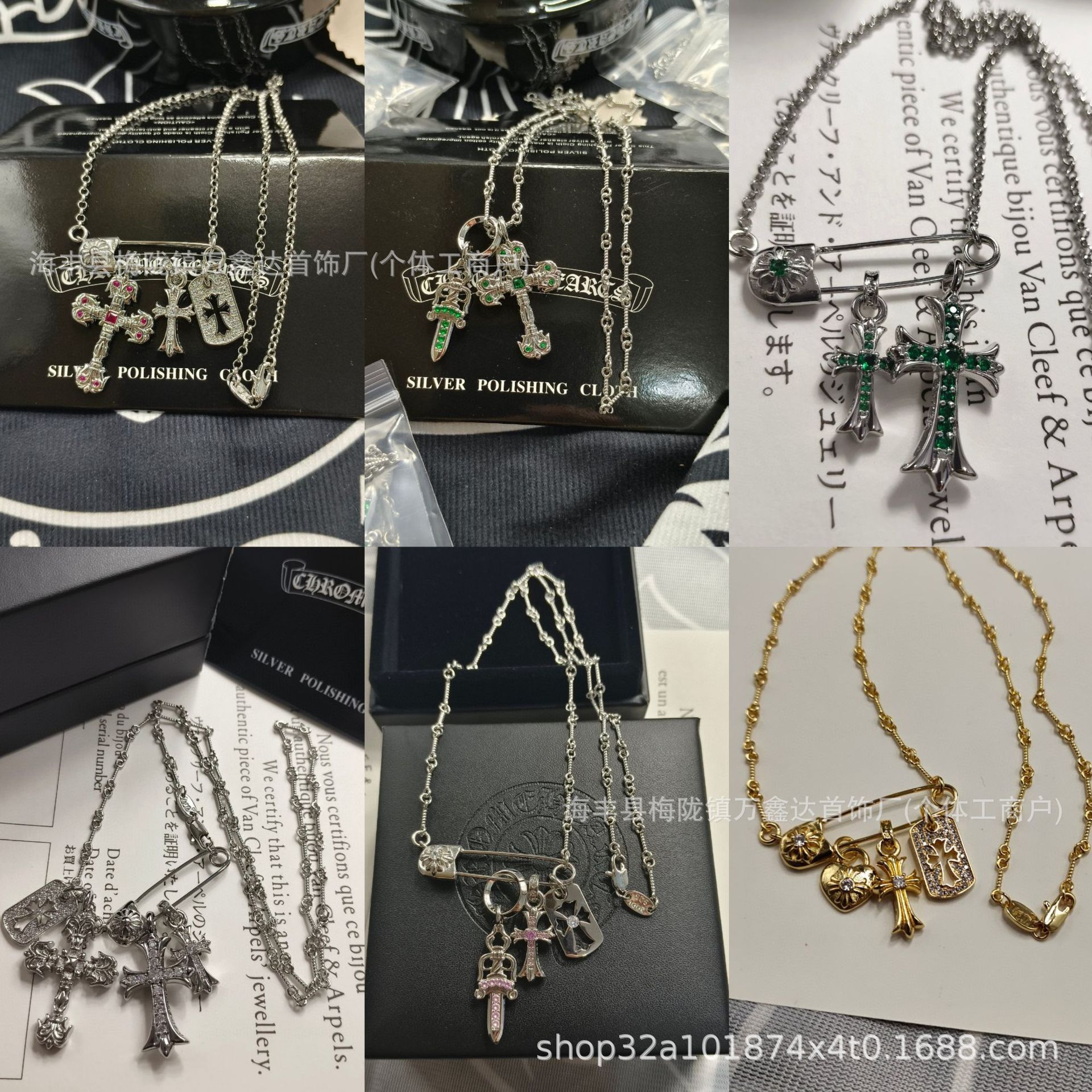 CH潮牌古風クロクロレトロ緑ドリルダブルクロスピンネックレス男女鎖チェーンメーカー直販