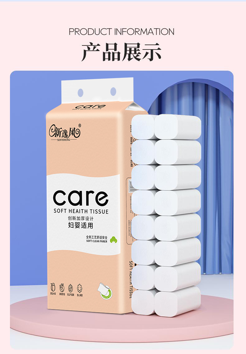 漫花ロール紙家庭用ティッシュ代発24巻全箱ロール紙5層厚さ有芯ロールトイレットペーパー