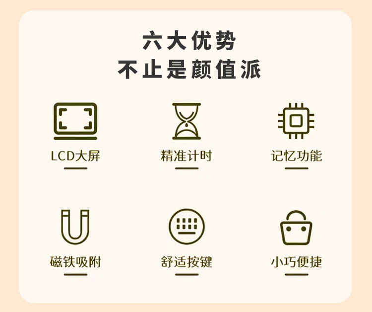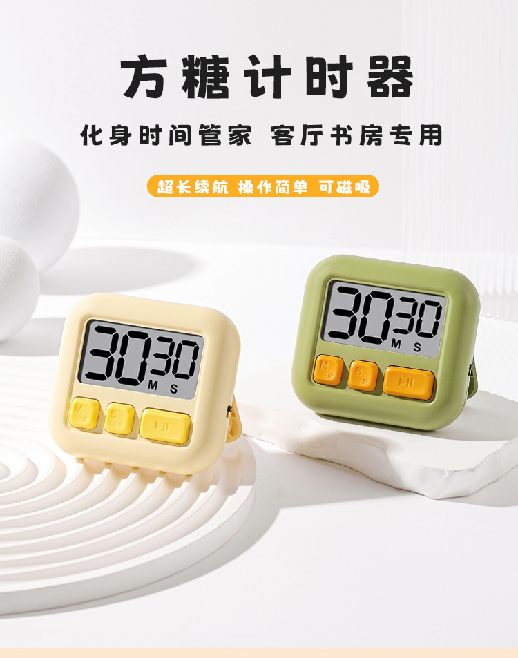 方糖计时器电子可视化厨房烘焙计时器立式磁吸简约风学生用计时器