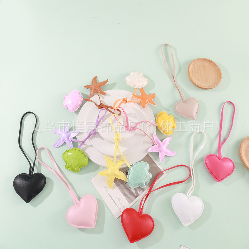 新款PU爱心手绳挂饰创意ins风拼色贝壳海星钥匙扣包包小挂件批发