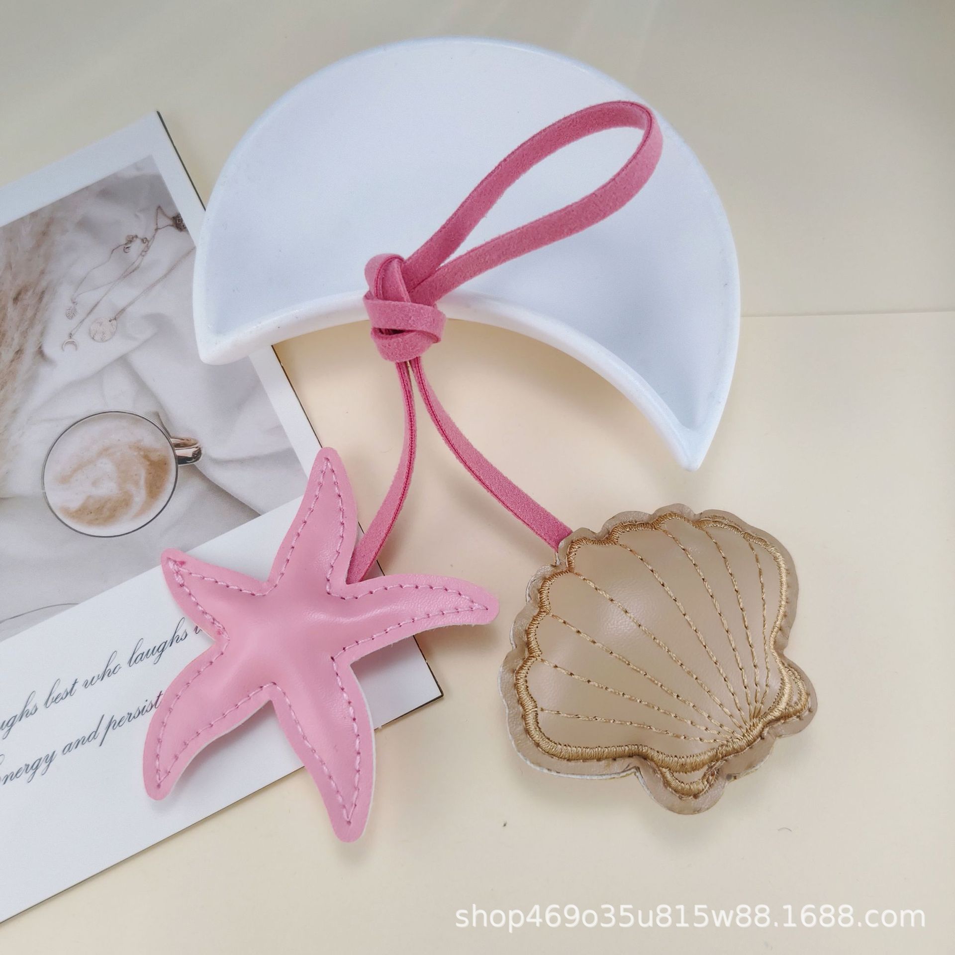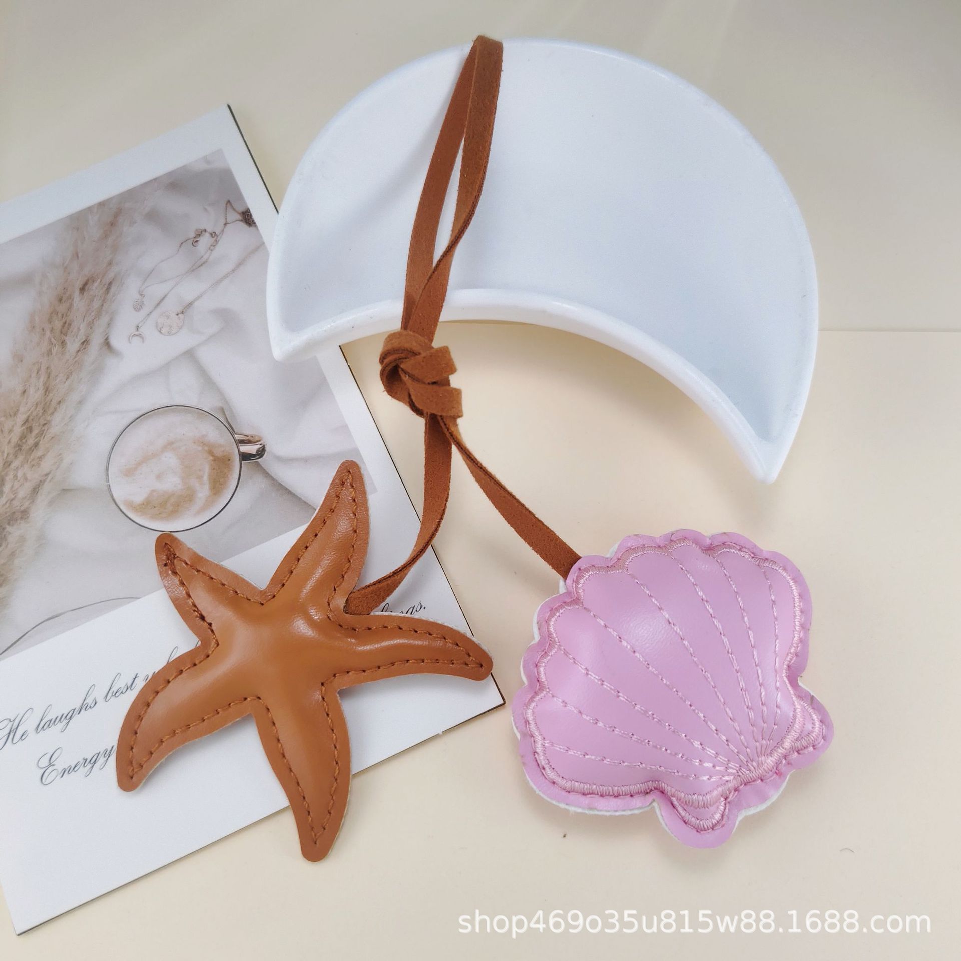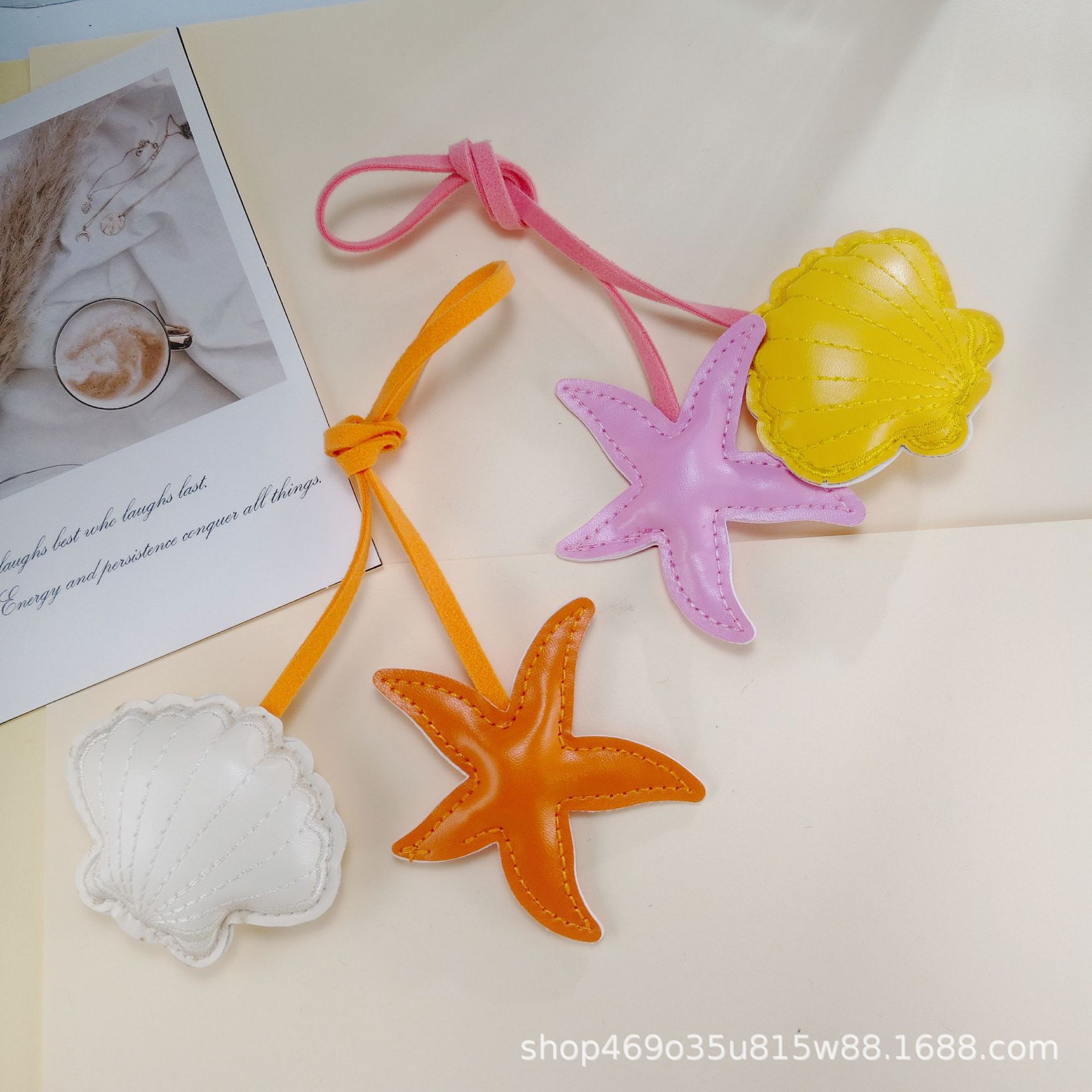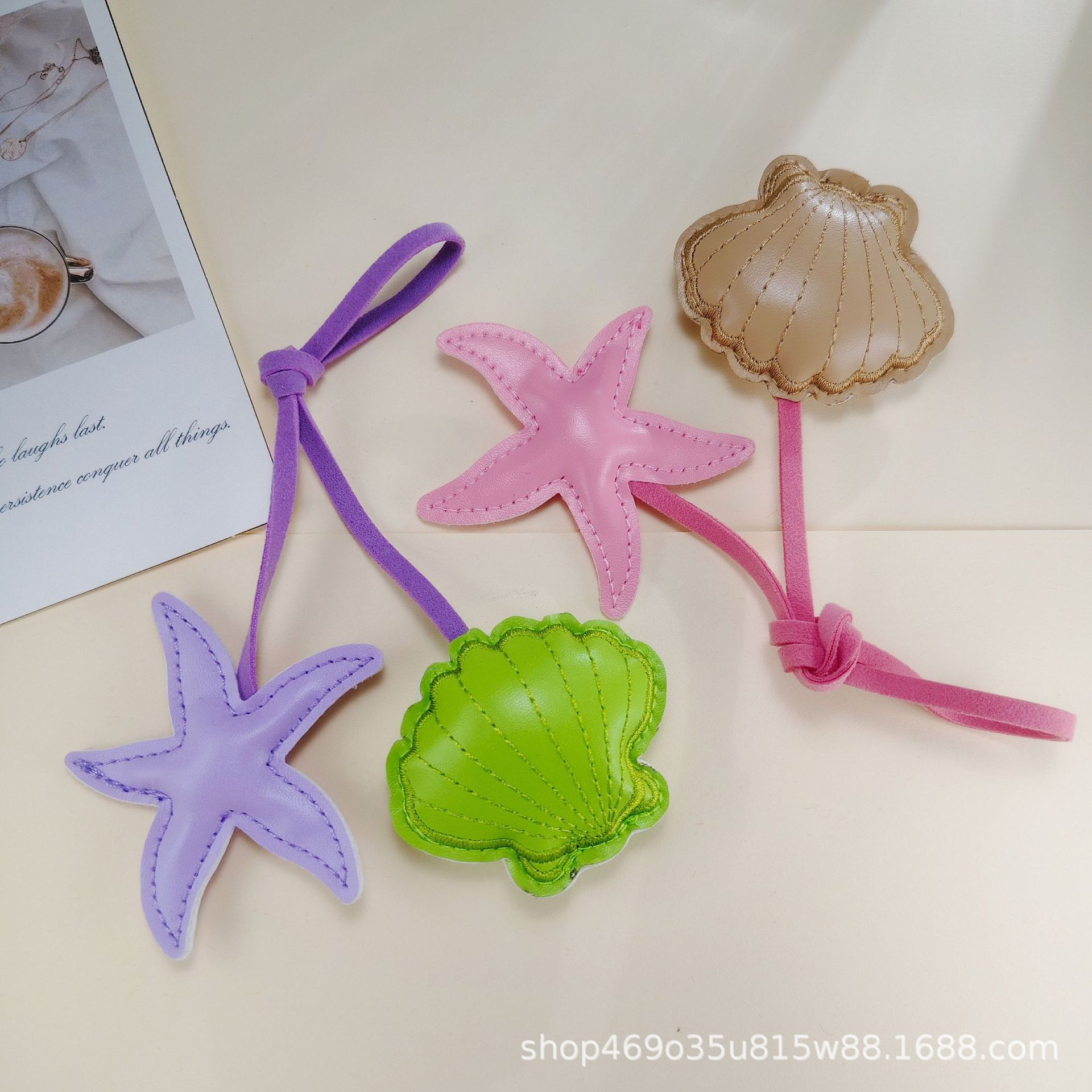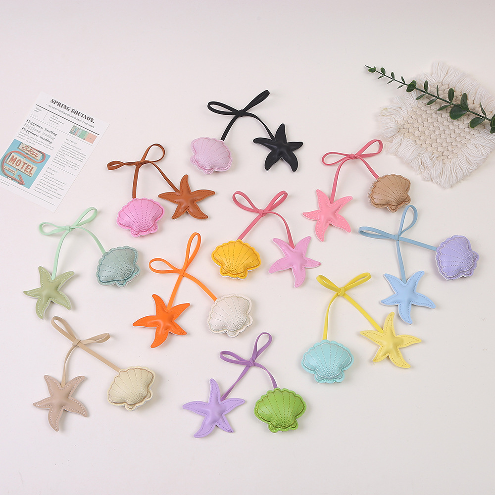 跨境创意撞色海星扇贝皮革挂饰小清新包包手绳pu钥匙扣装饰配件