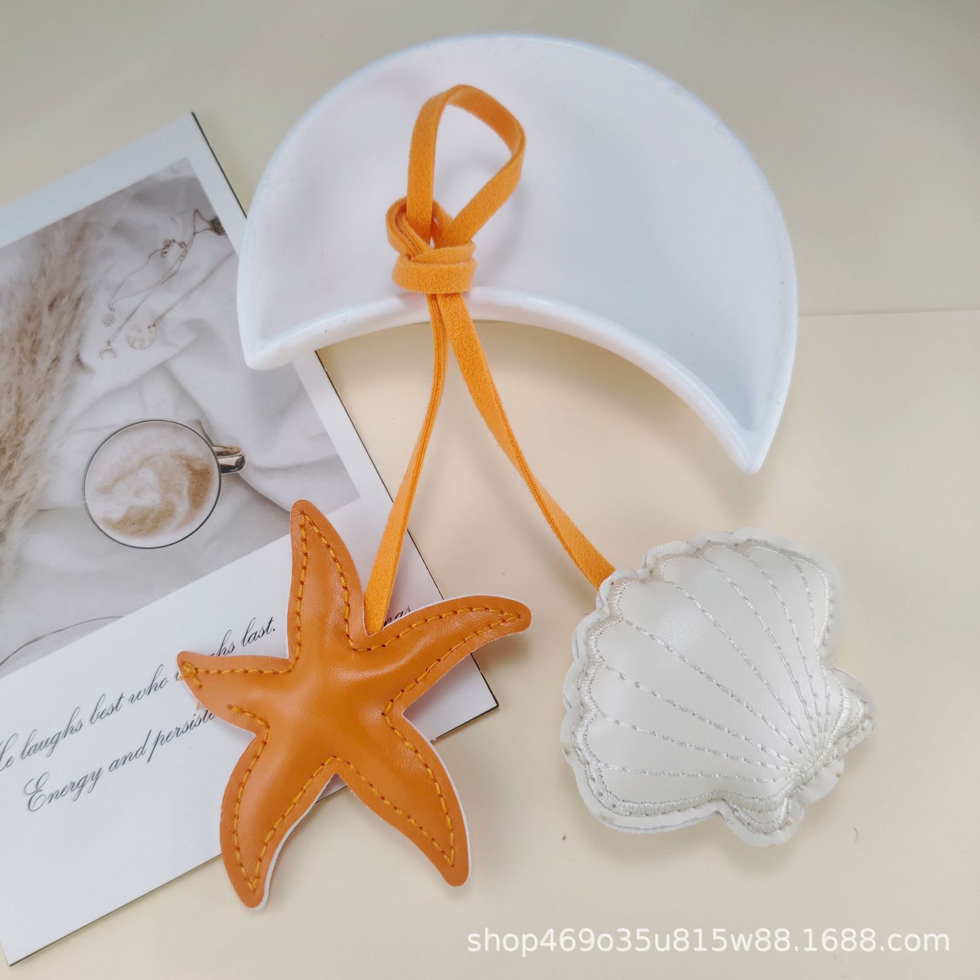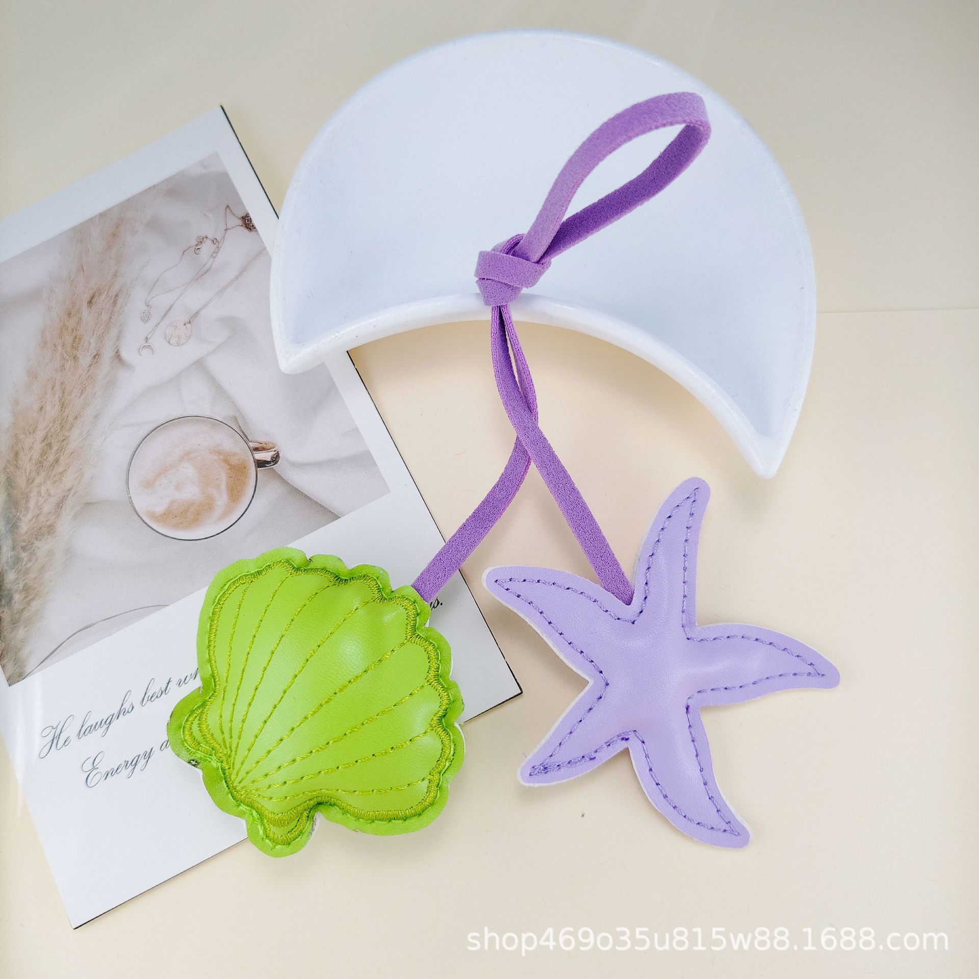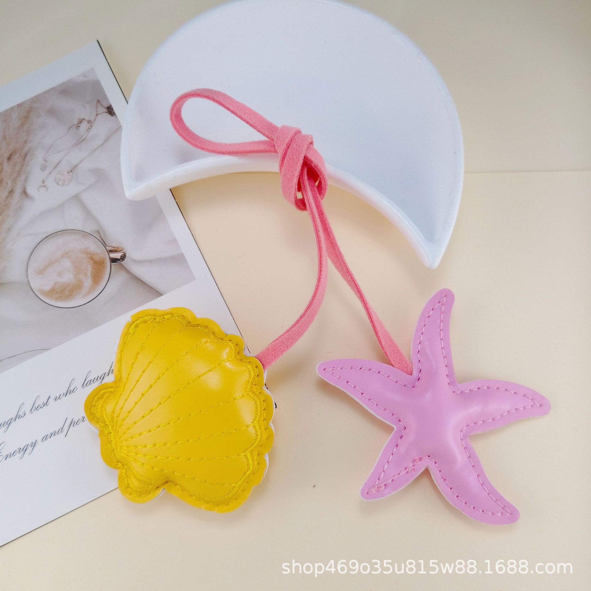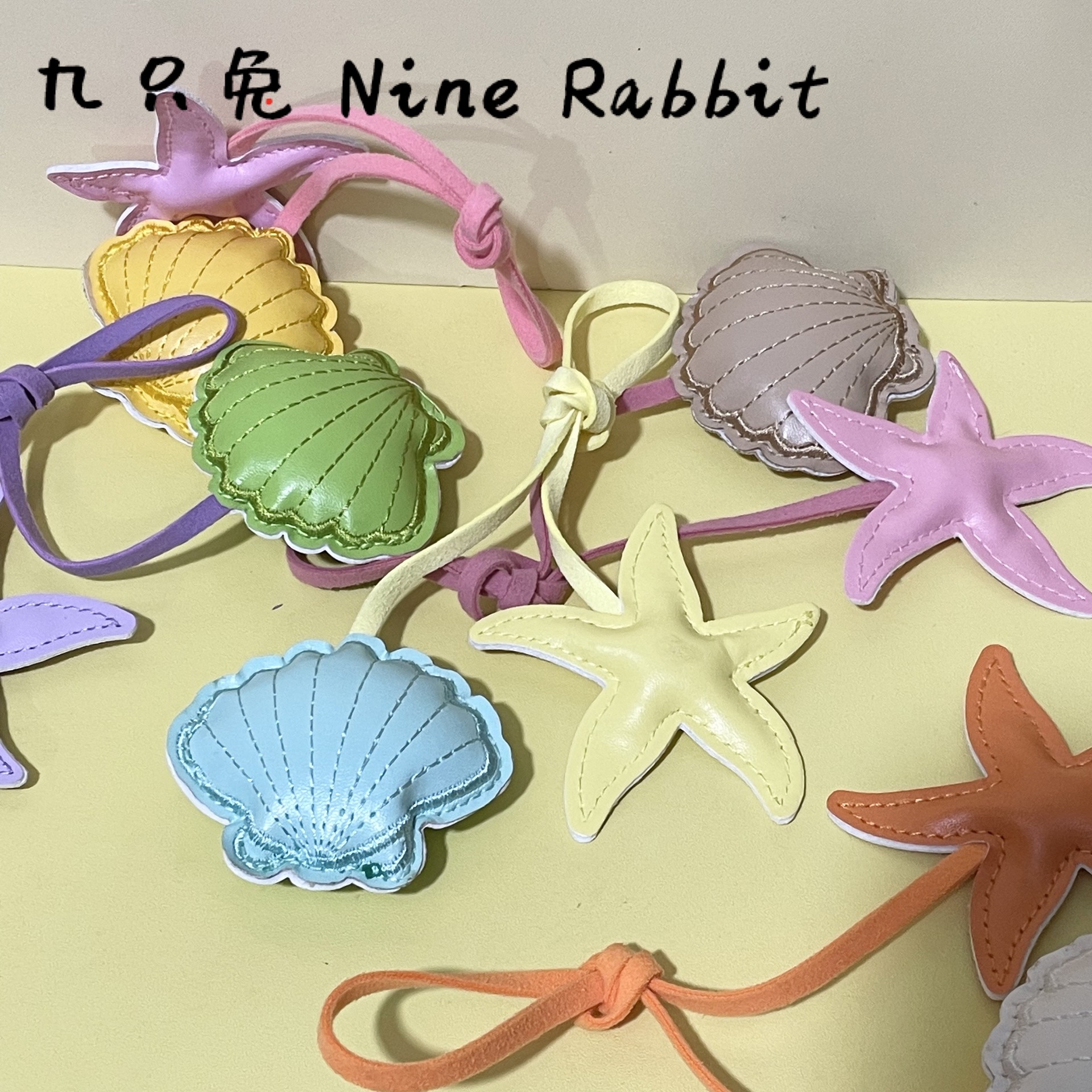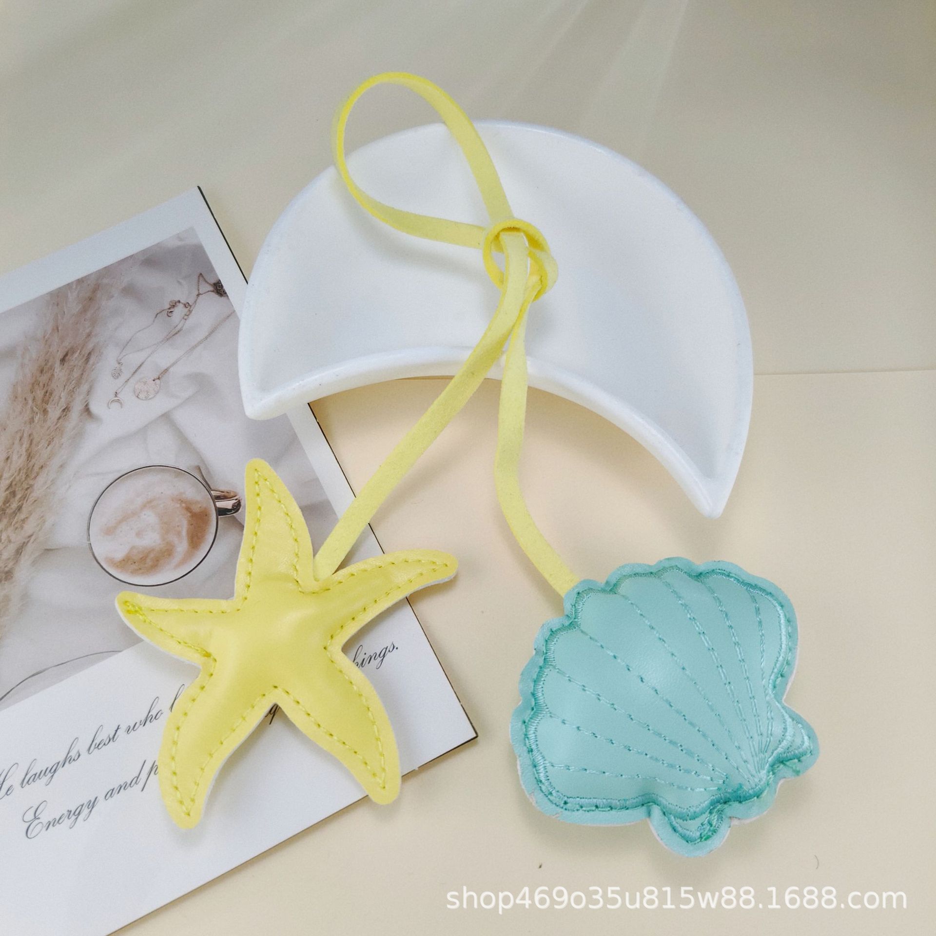 跨境创意撞色海星扇贝皮革挂饰小清新包包手绳pu钥匙扣装饰配件
