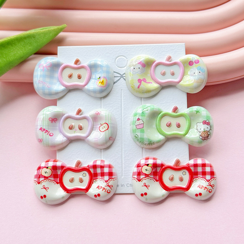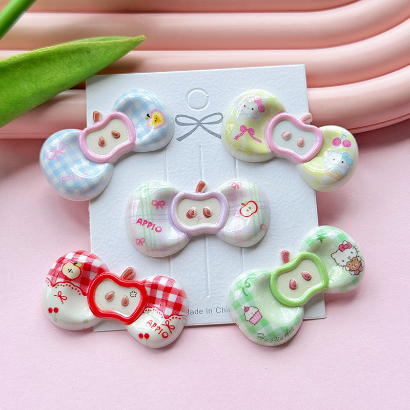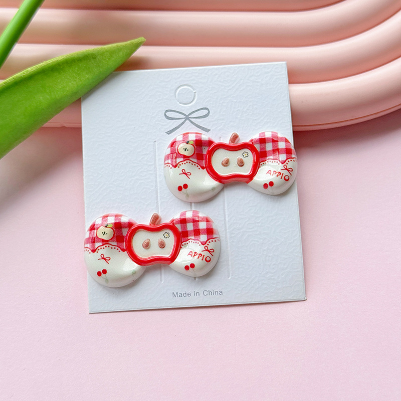 奶油苹果格纹发夹ins少女多巴胺苹果发夹高颜值少女发饰