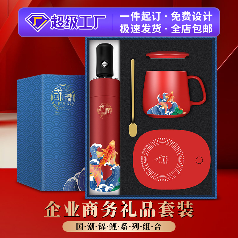 Guochao ビジネスギフトセット、会社設立イベントギフト、カスタムロゴ傘、魔法瓶カップ、実用的な記念品