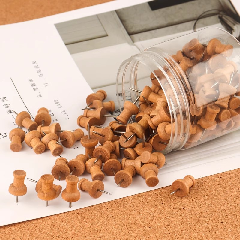 木质图钉100枚桶装按钉大头工字钉软木板手工装饰照片固定器摁钉