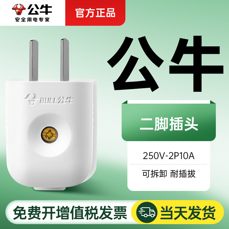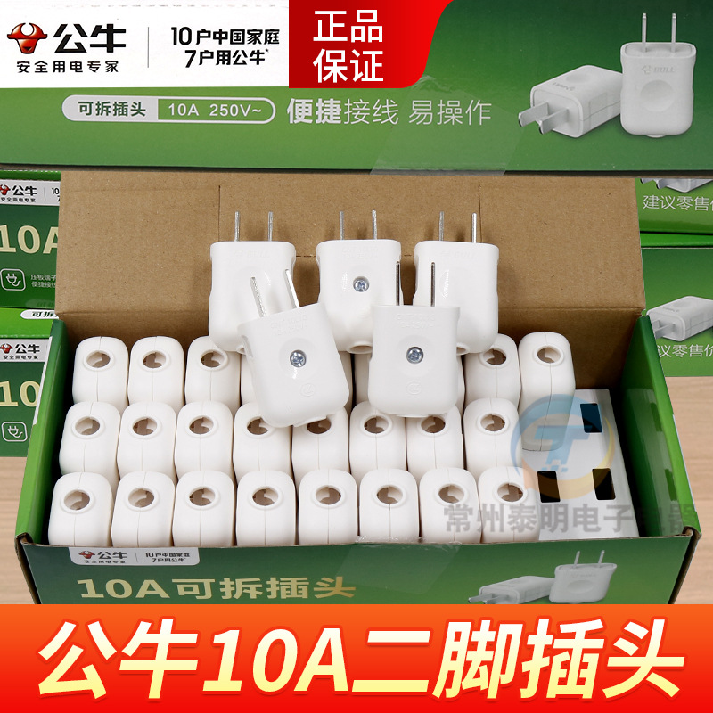 公牛10A两脚加厚插头摔不烂自接线插头防摔家用拆装耐摔GNT-10L4S