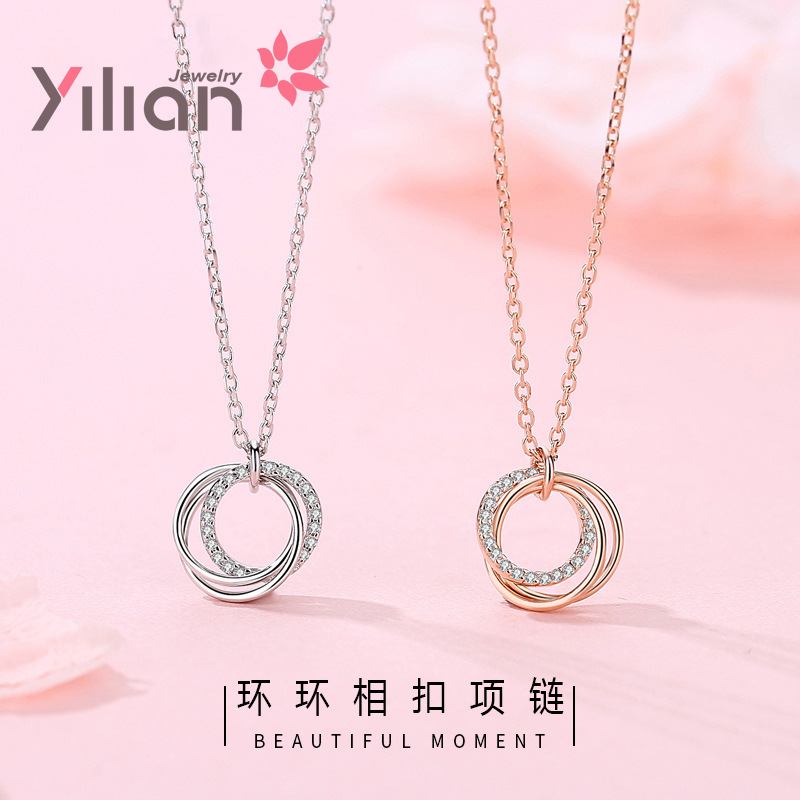 伊蓮s925銀飾り純銀ネックレス女性韓国版個性三環円鎖鎖シンプル百合ペンダントアクセサリー