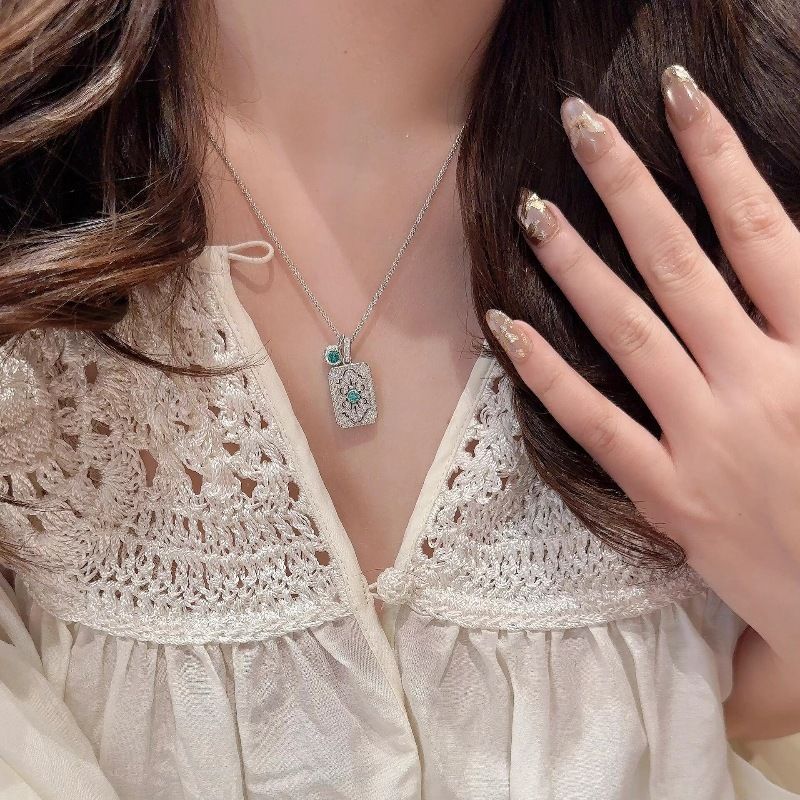 925 ネックレスにはダイヤモンドがちりばめられ、パライバメインストーン、軽い高級感、レトロ、絶妙な気質、ファッショナブルな鎖骨チェーンが施されています。