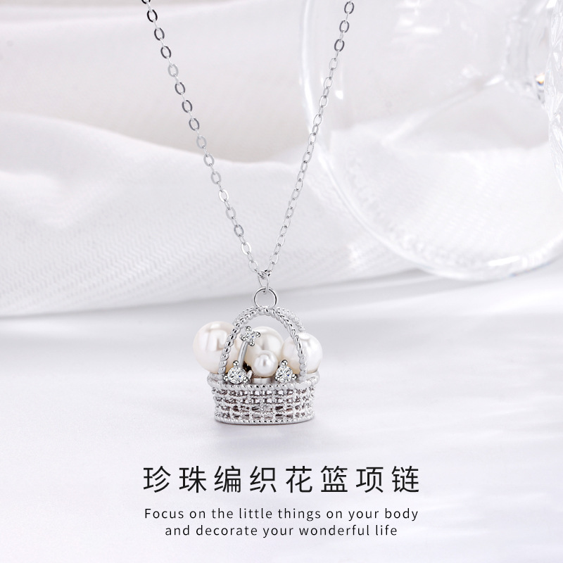 S925 スターリングシルバーパール織りフラワーバスケットネックレス女性のニッチライト高級エレガントなハイエンド絶妙な鎖骨チェーン卸売