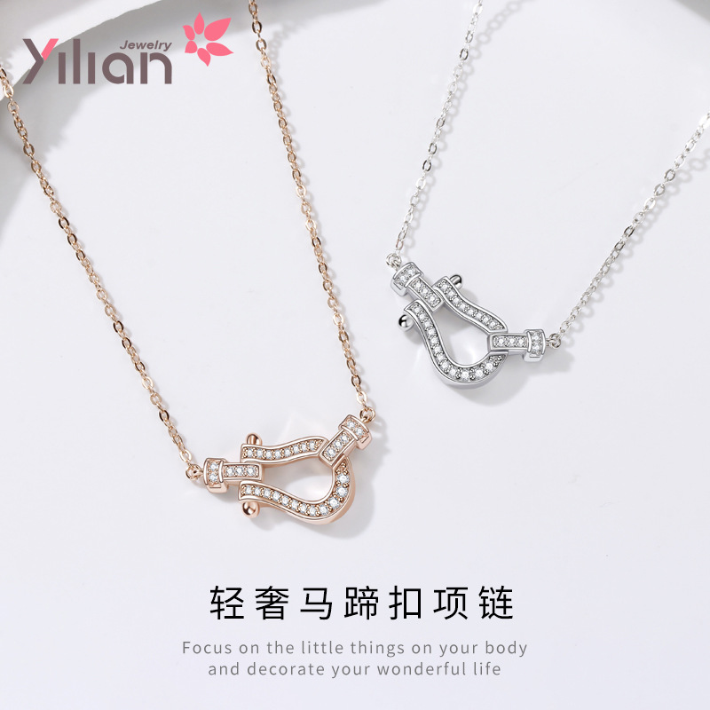 S925 スターリングシルバー馬蹄バックルネックレス、女性用、マイクロ散りばめられたダイヤモンド、軽くて豪華なニッチデザイン、パーソナライズされた鎖骨チェーン、ヨーロッパとアメリカの多用途スタイル