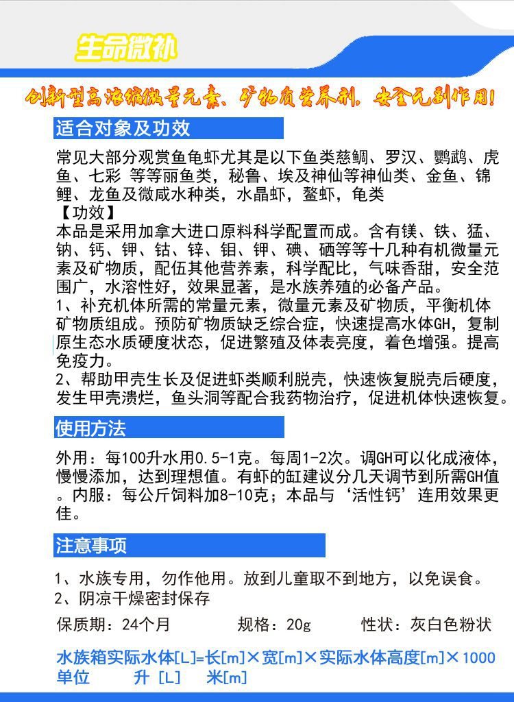 水族观赏鱼虾龟微量元素矿物质补充剂龙鱼罗汉七彩慈鲷神仙鹦鹉