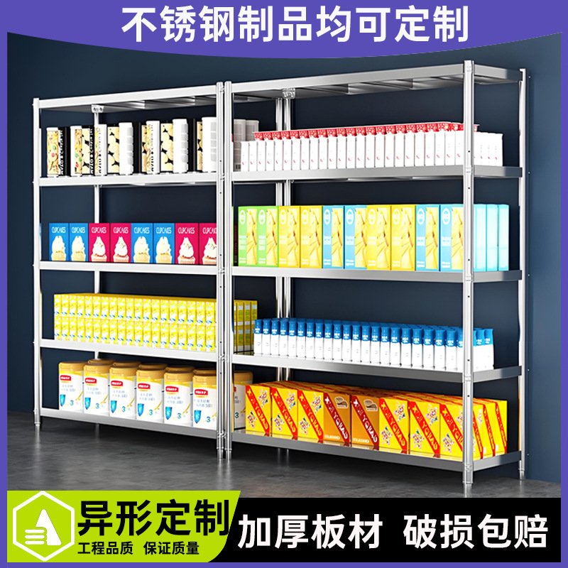 ステンレス棚商用工場厨房棚四階床置き式展示棚倉庫収納棚