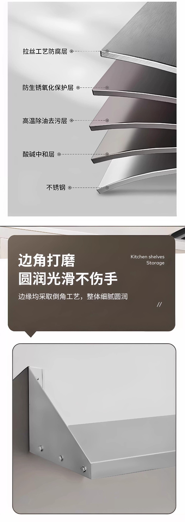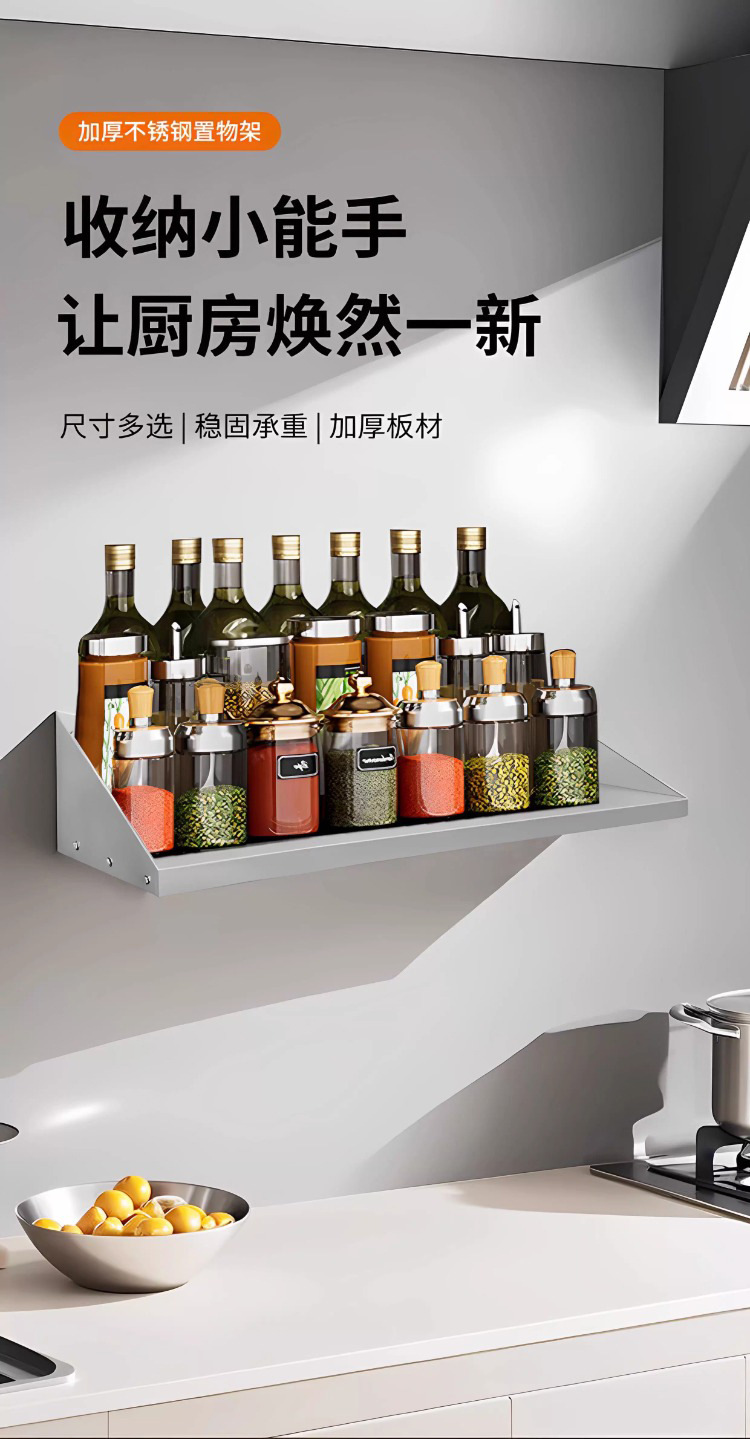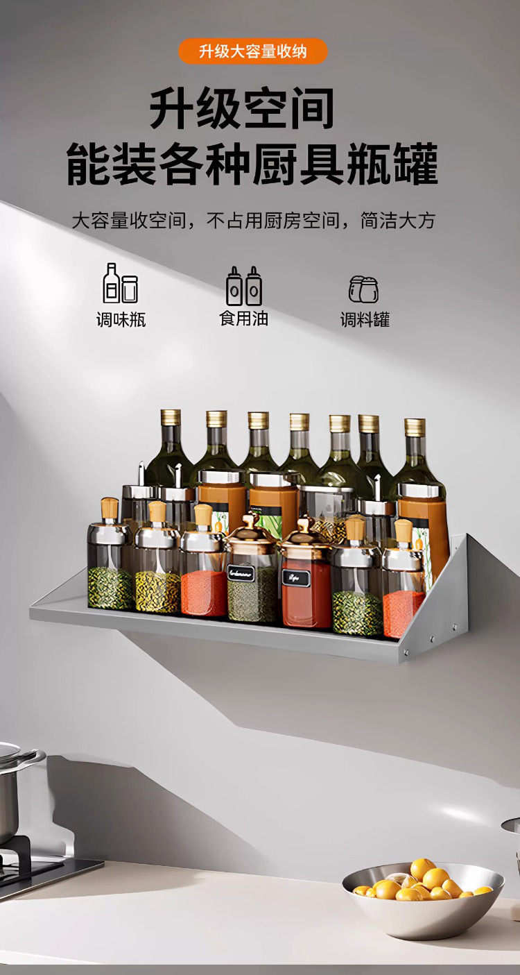 不锈钢厨房置物架壁挂式墙上微波炉收纳架免打孔墙上悬空调料架子