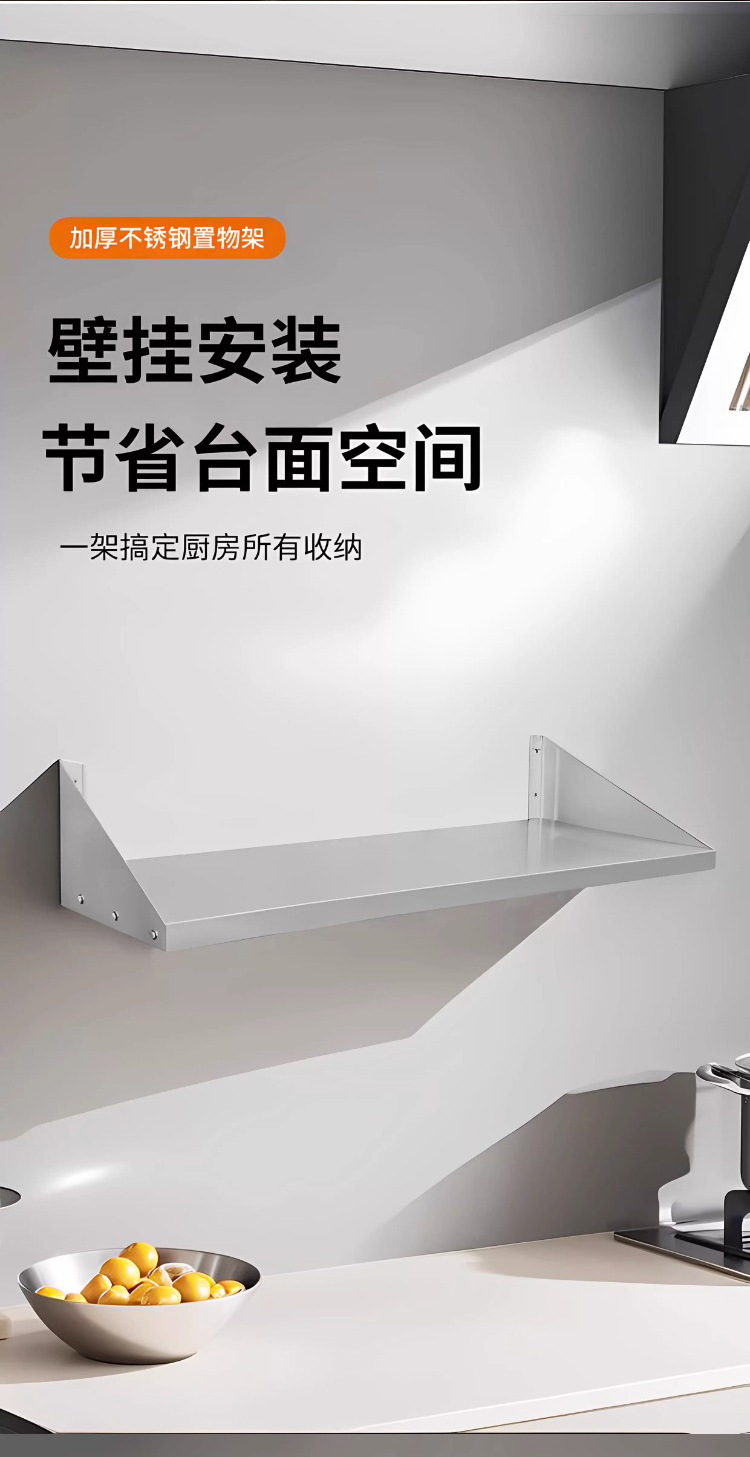 商用厨房挂墙板不锈钢单层置物架壁挂承重挂板挂架加厚隔板层架