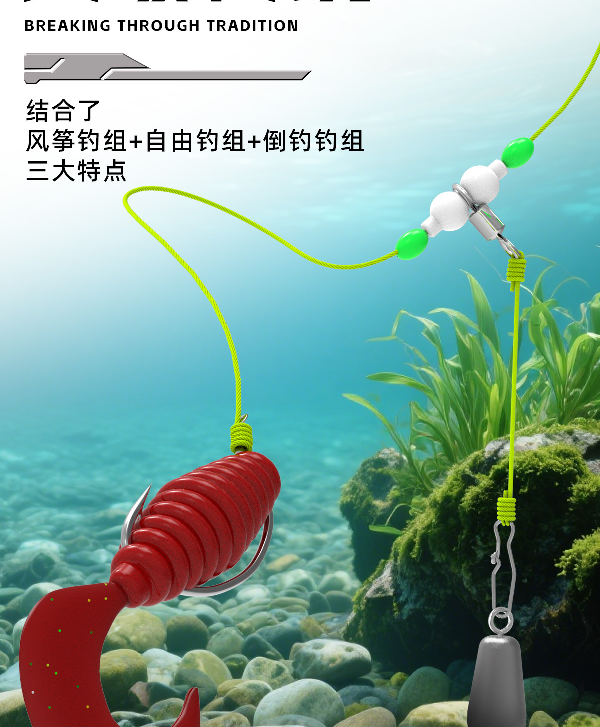 小仙郎路亚风筝钓组成品反离底倒钓钩软饵逗钓防缠绕远投鲈鱼翘嘴