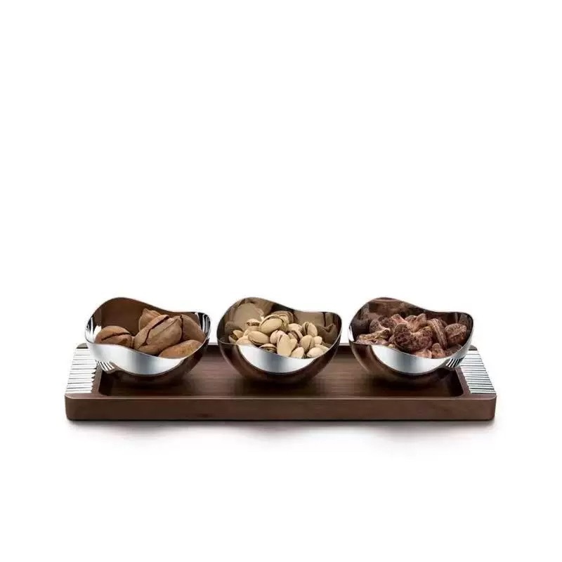 高級感のあるステンレスの胡桃木の乾燥果物皿家庭用のお茶の下のお茶のカラオケの軽食皿の果物の碗