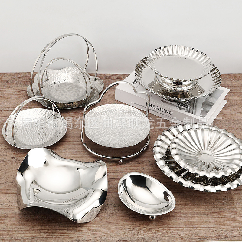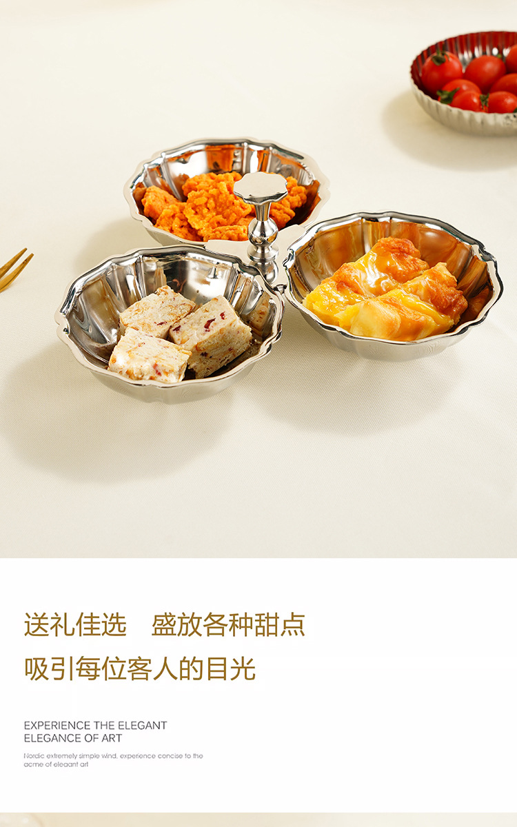 欧式不锈钢茶点盘创意水果盘家用茶几零食糖果点心干果碗小吃碟