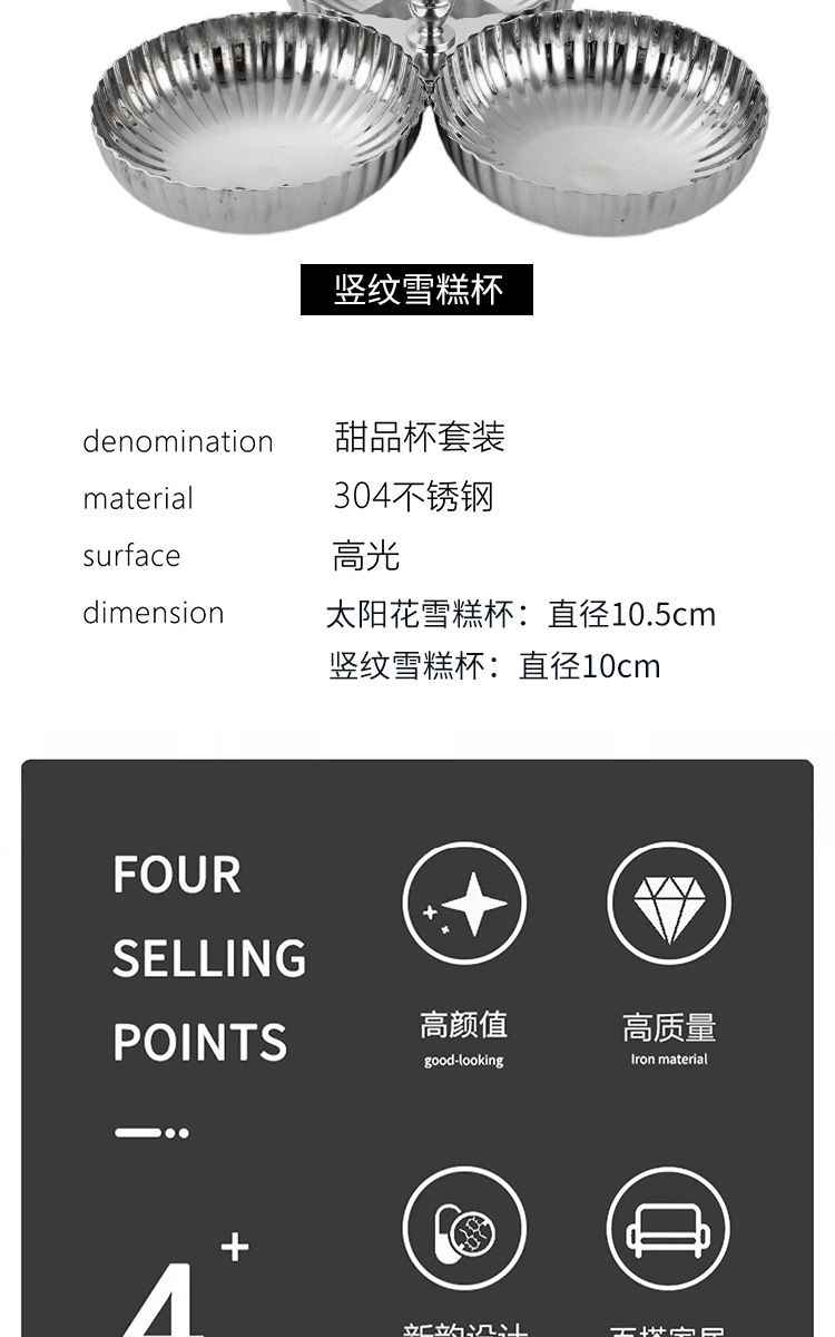 工厂直销304不锈钢欧式雪糕杯甜品杯布丁杯下午茶冰淇淋杯奶冻杯