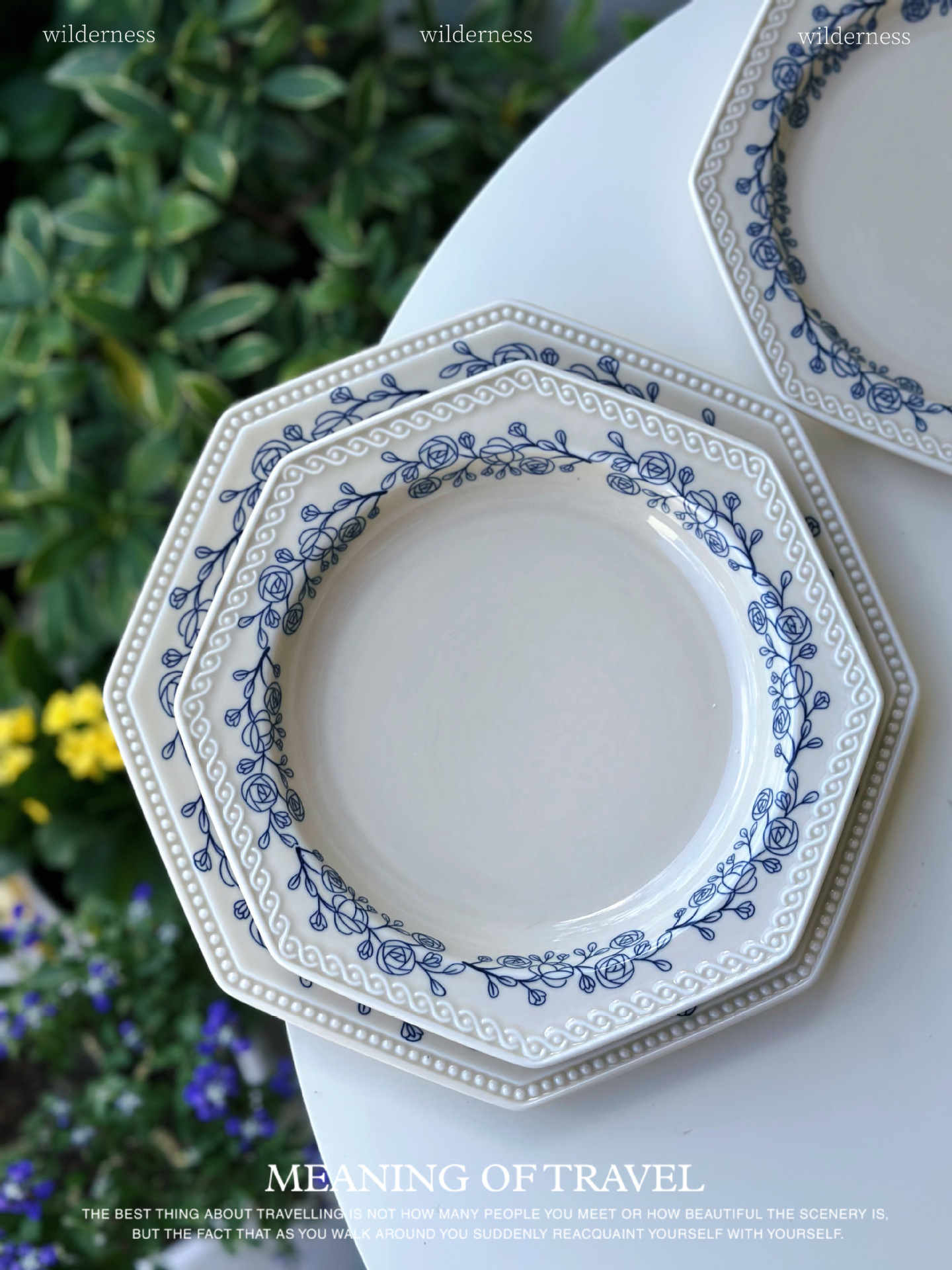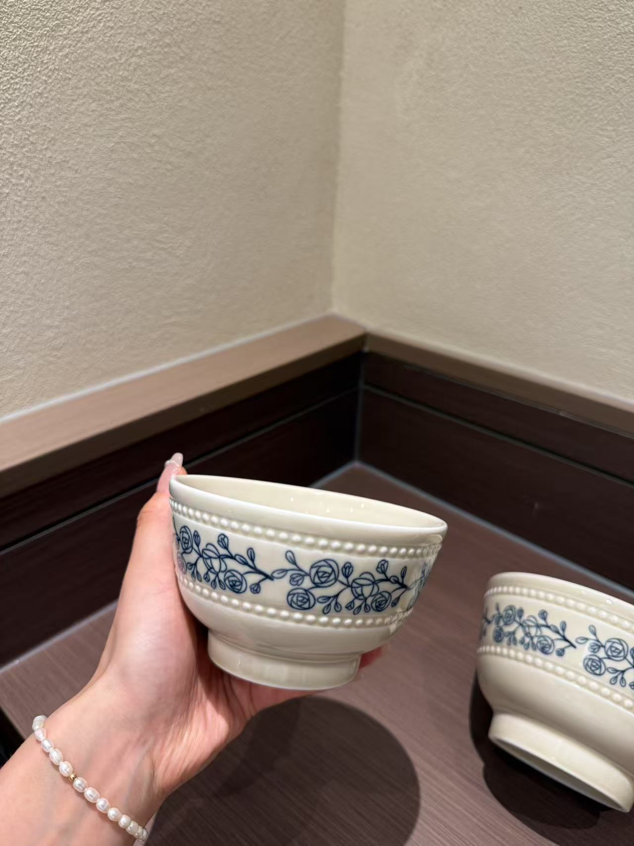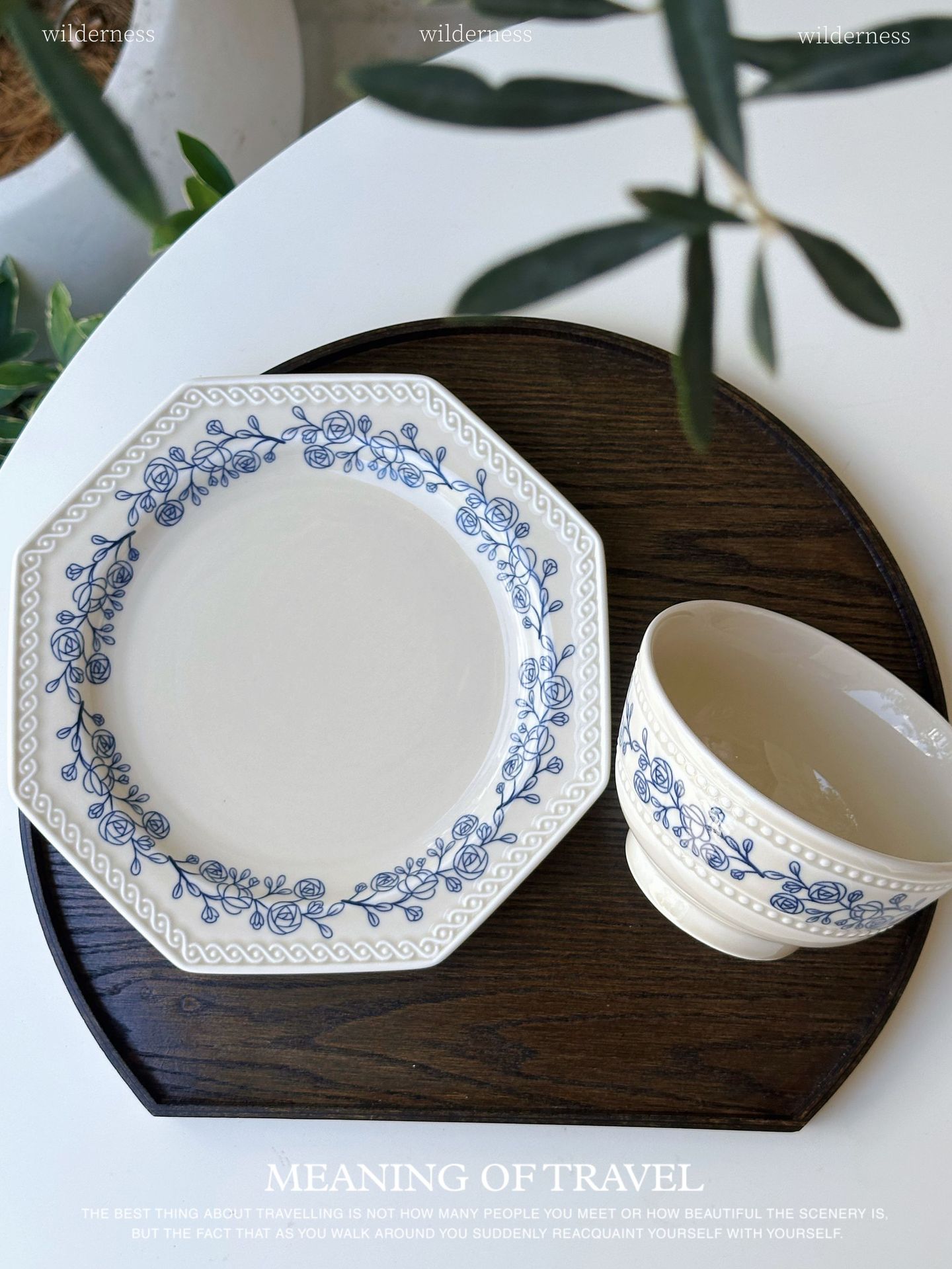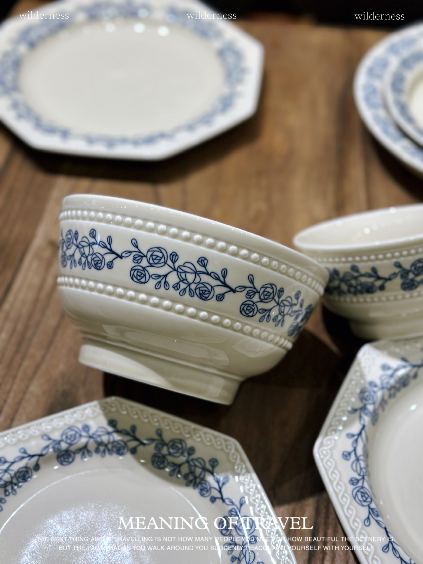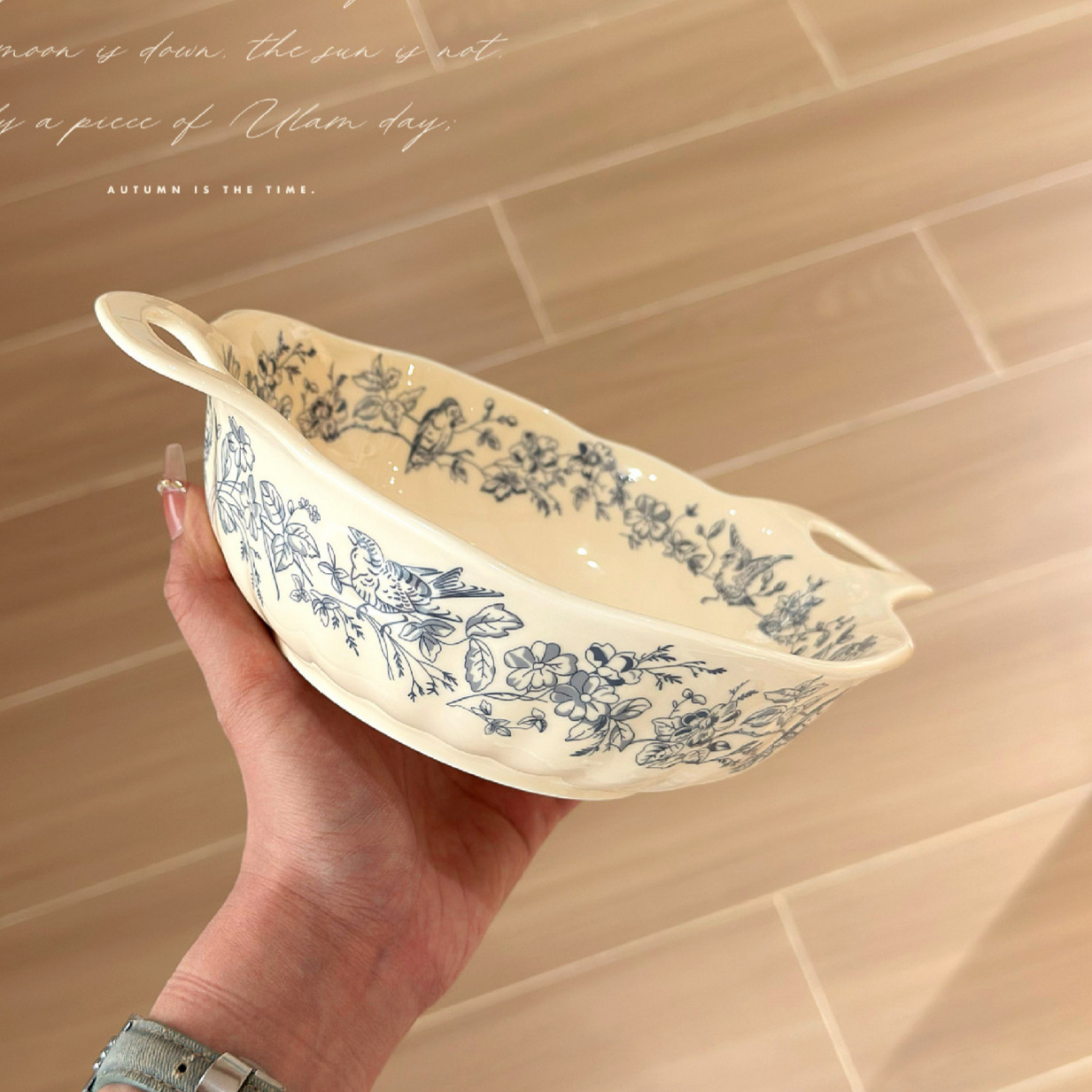 法式中古蔚蓝梦境蓝花卉陶瓷双耳碗汤碗面碗复古下午茶糕点盘