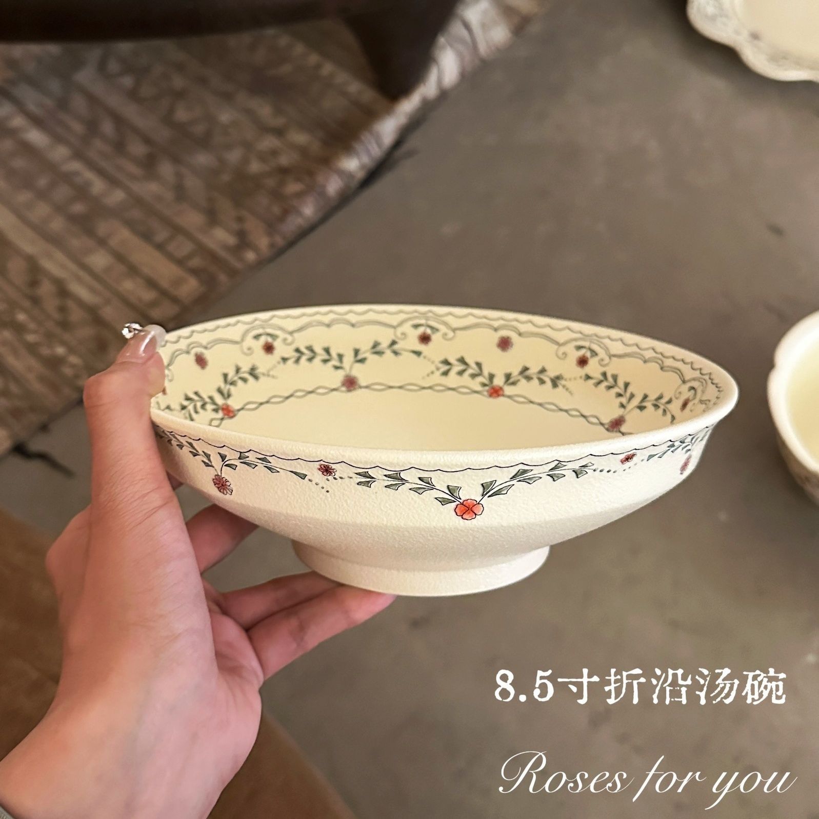 日照柔薇法式复古哑光陶瓷碗碟套装家用早餐碗沙拉碗甜品盘面碗