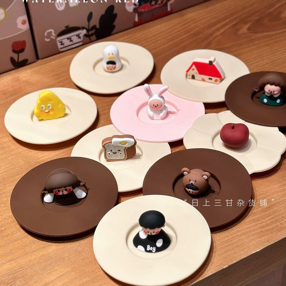 シングル販売アニメかわいいシリコンカップ蓋食品級水カップマグカップ汎用防塵ガラスカップ蓋耐高温