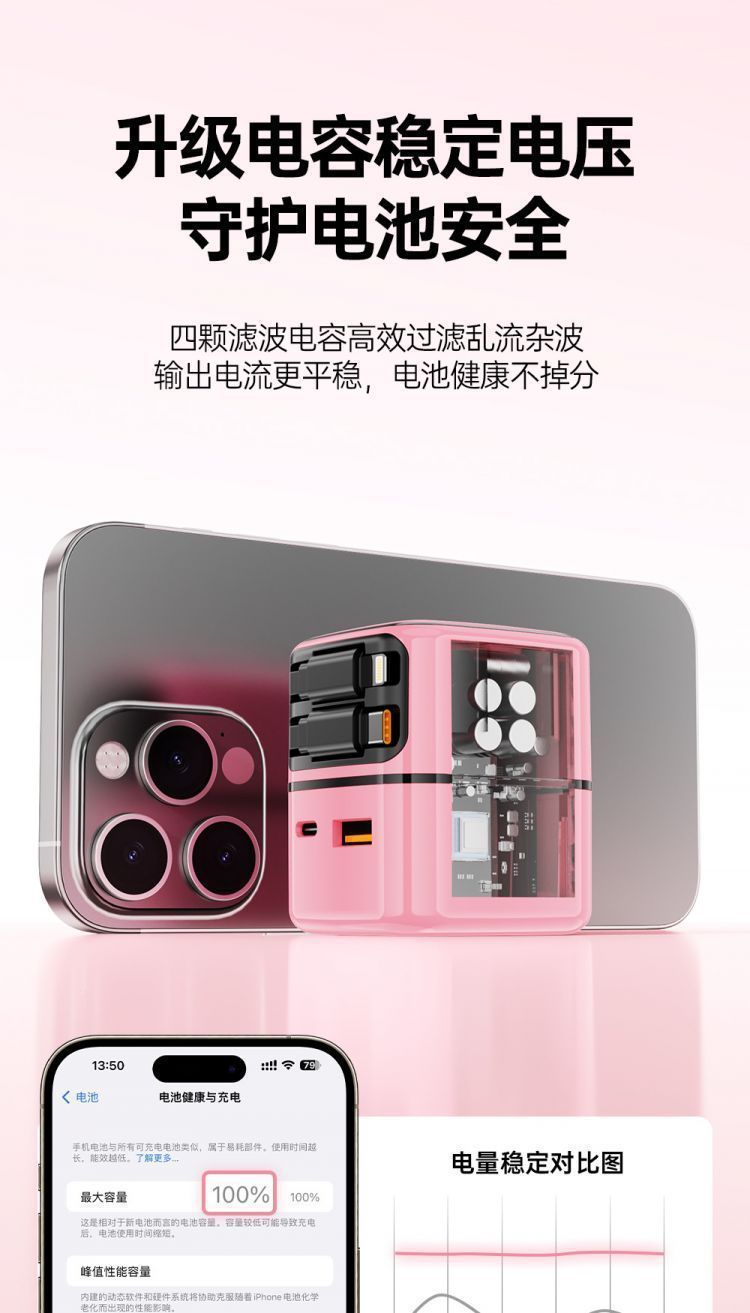 3C认证双拉线氮化镓充电器,全协议全兼容全电压,防火材料,快充