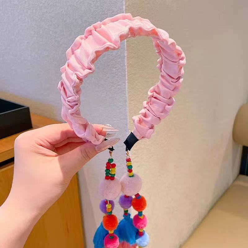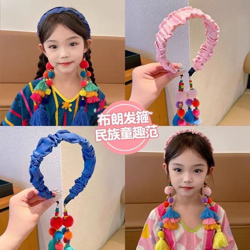儿童2025年新款复古压发头箍发带女童民族风宝宝毛球流苏发箍头饰