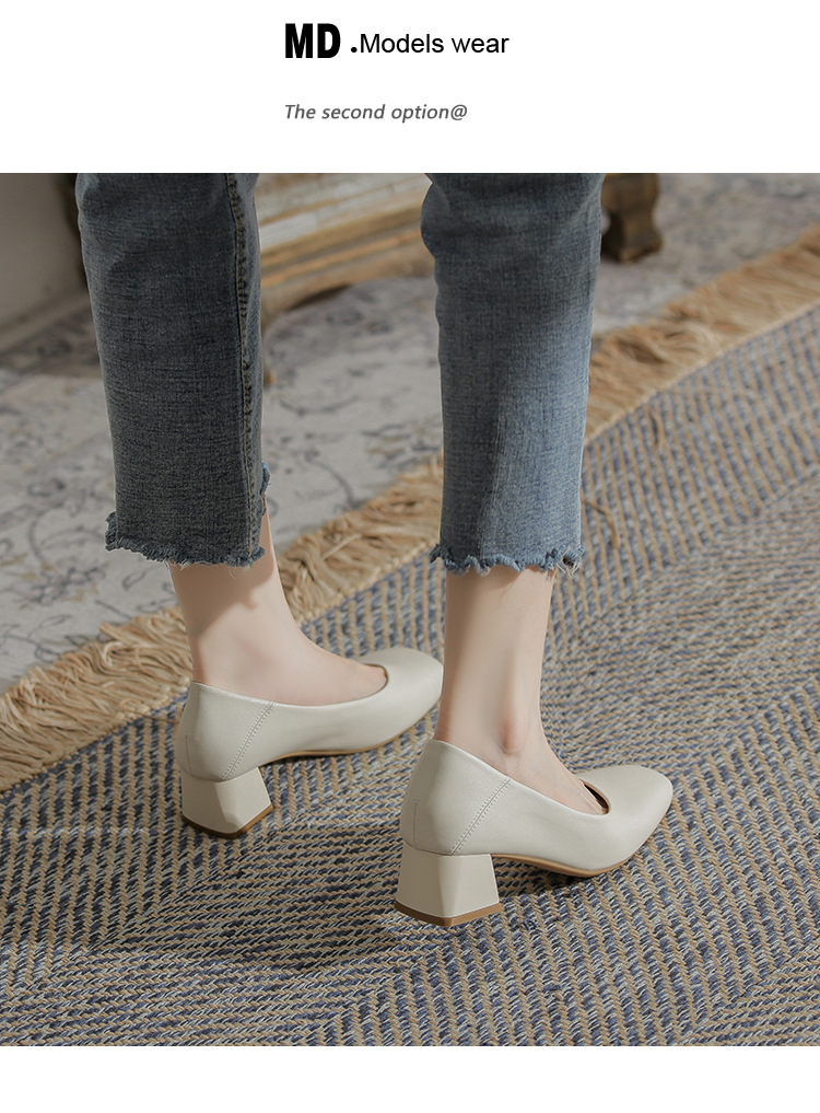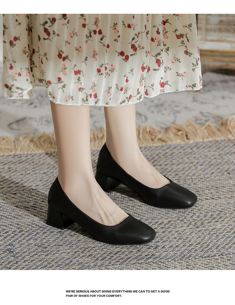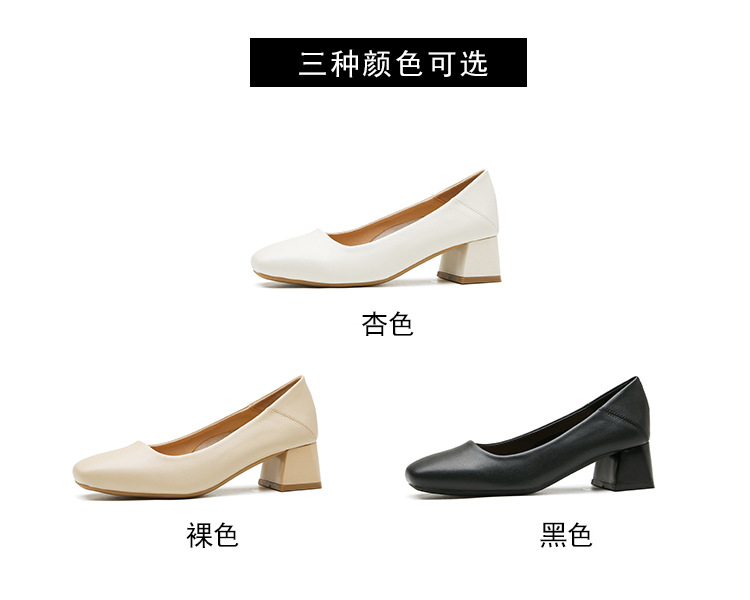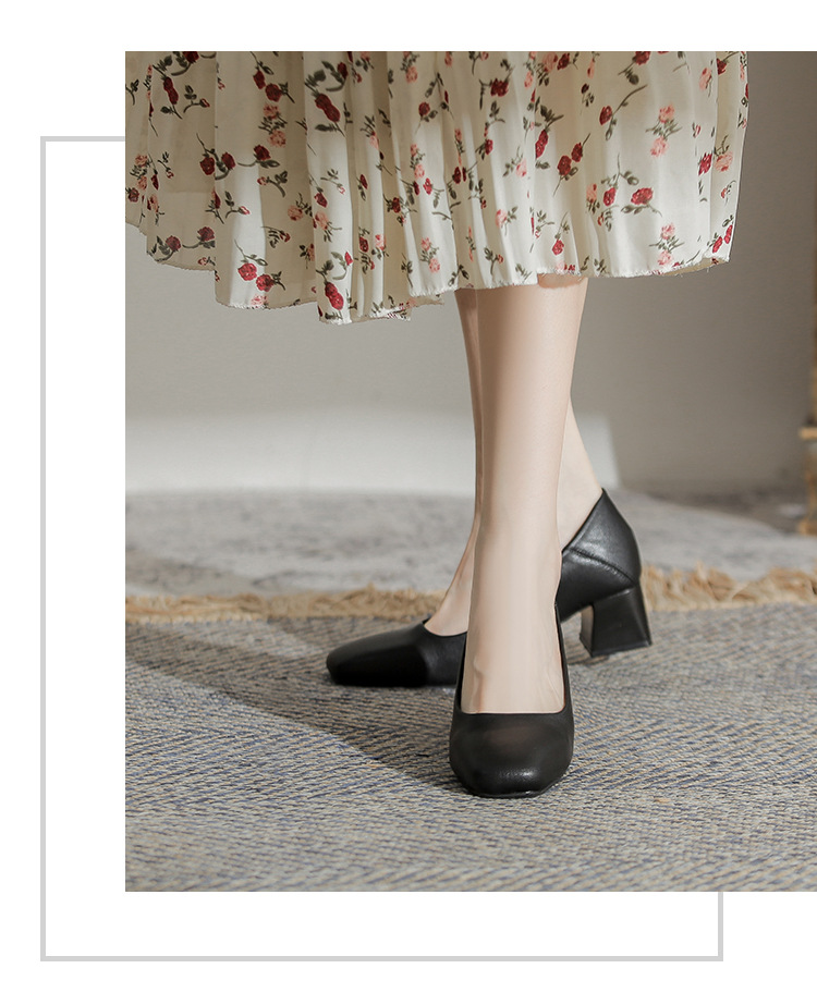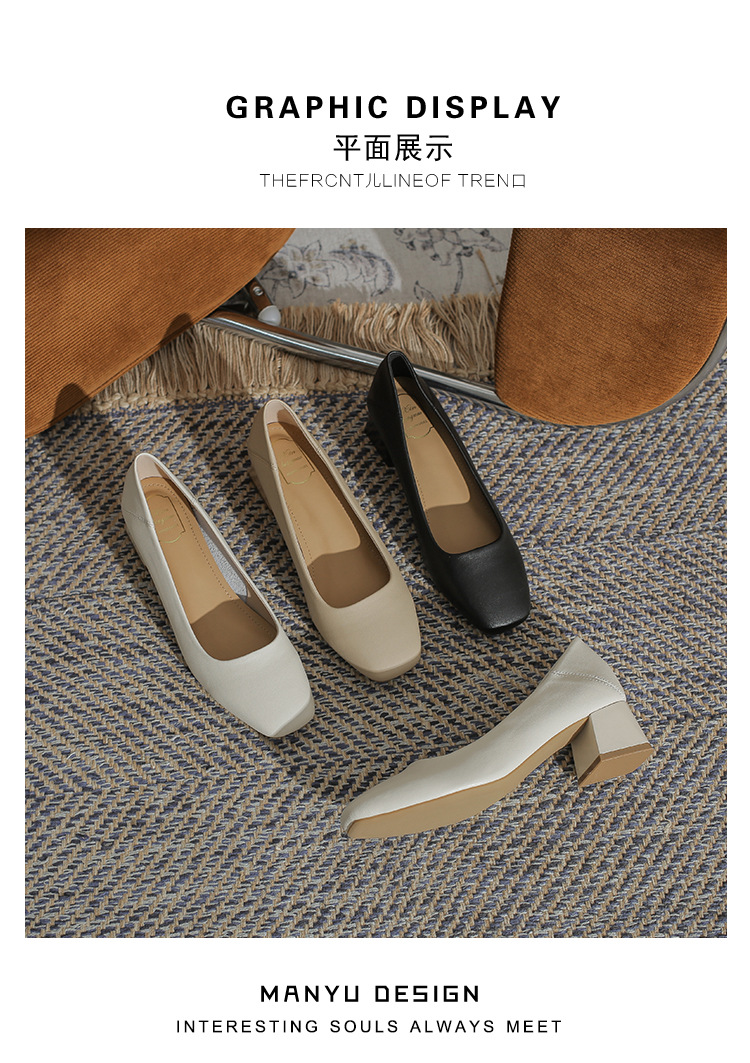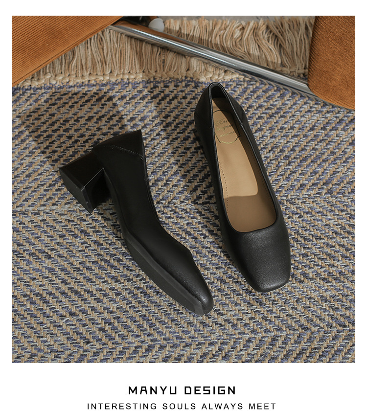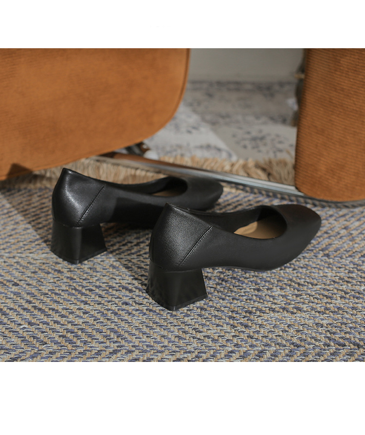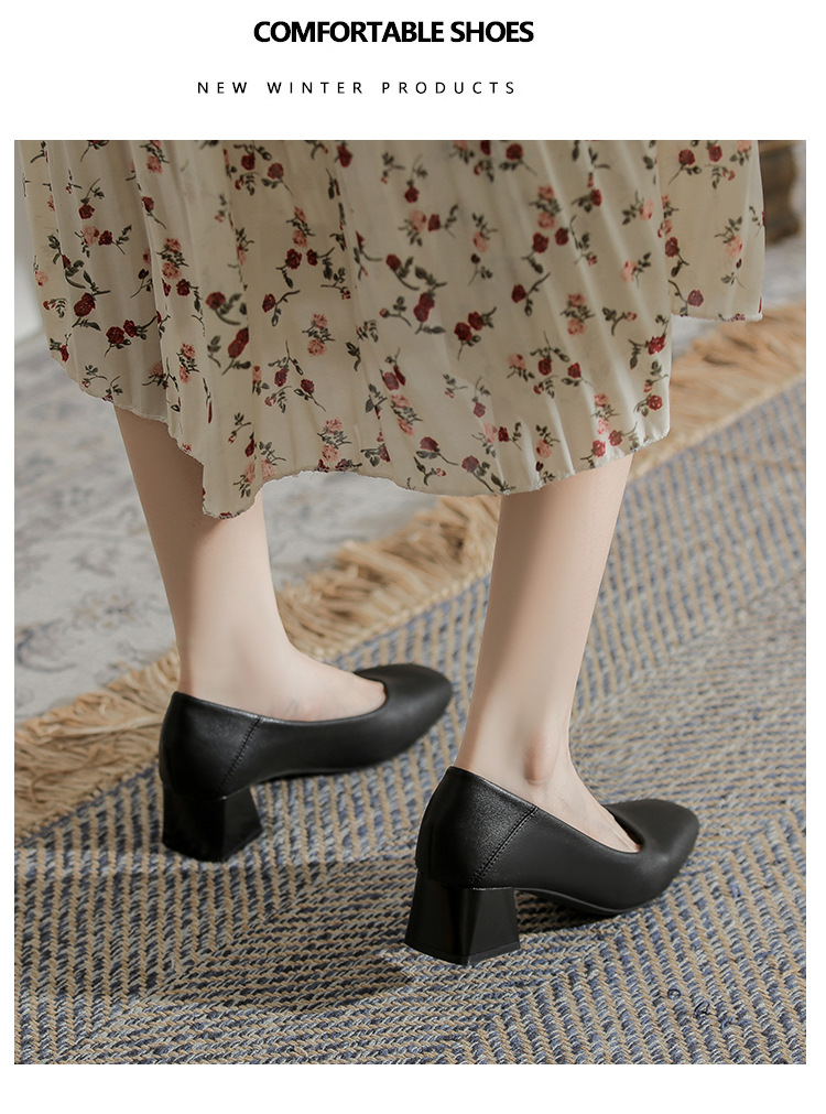 真皮法式单鞋女2025新款浅口方头粗跟黑色配旗袍工作鞋通勤鞋大码