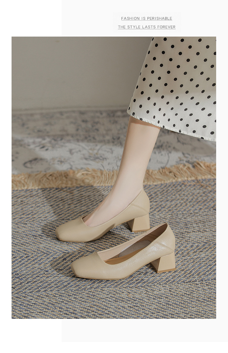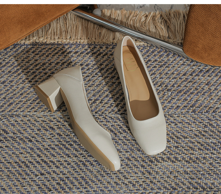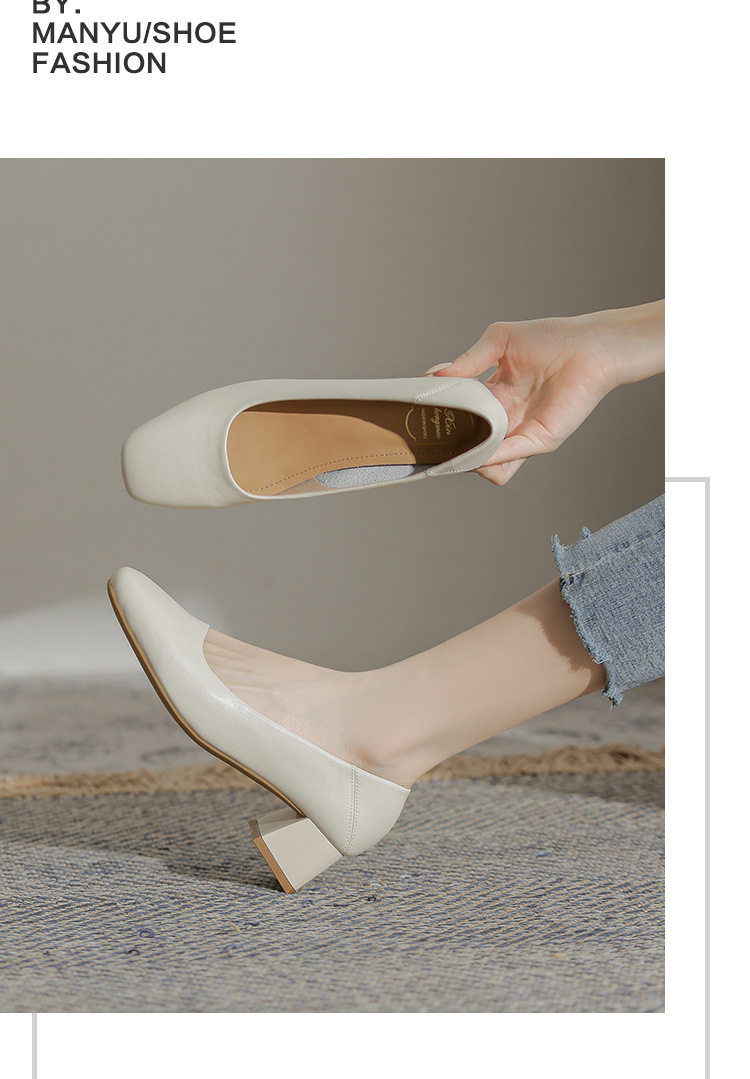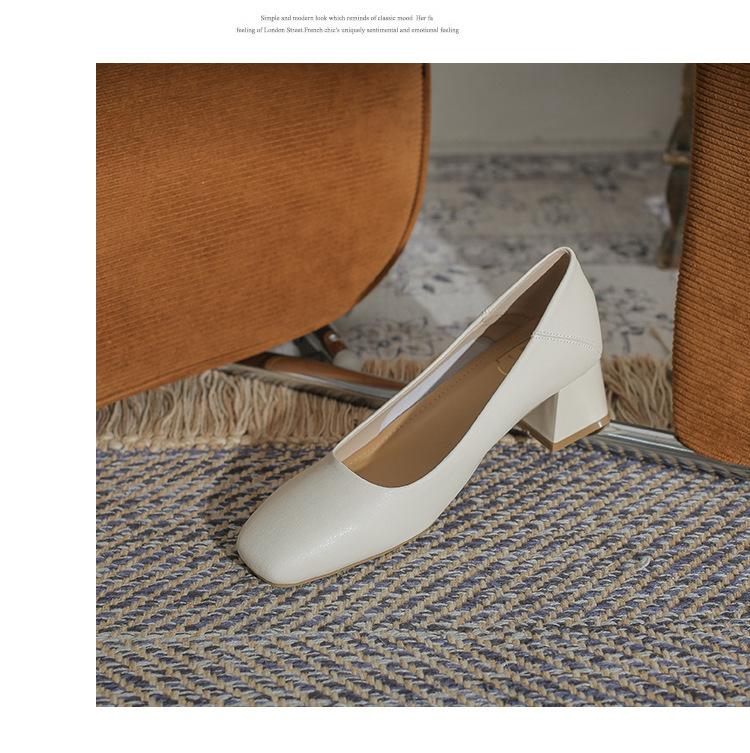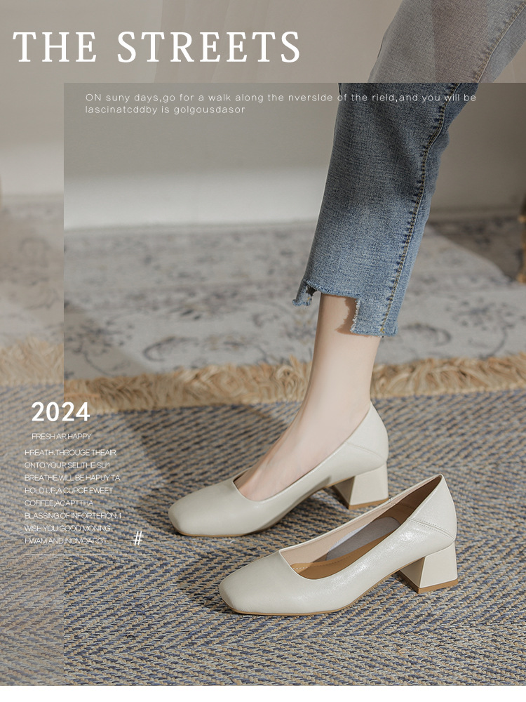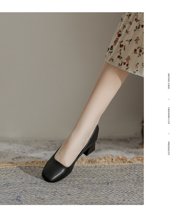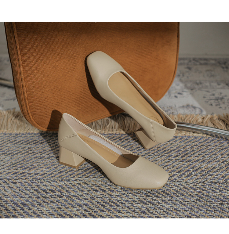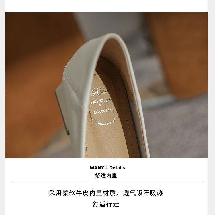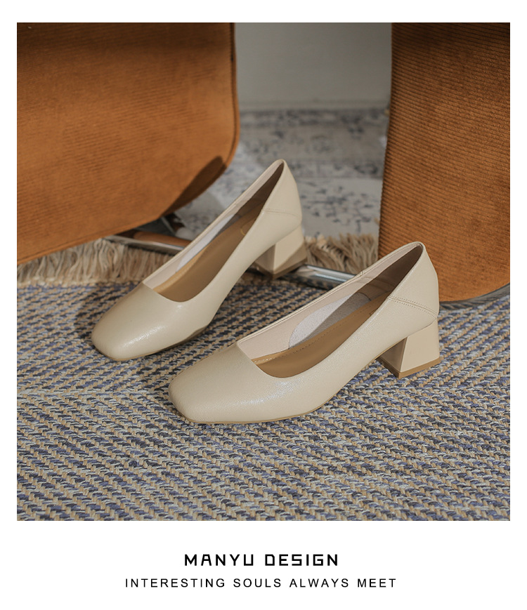 真皮法式单鞋女2025新款浅口方头粗跟黑色配旗袍工作鞋通勤鞋大码