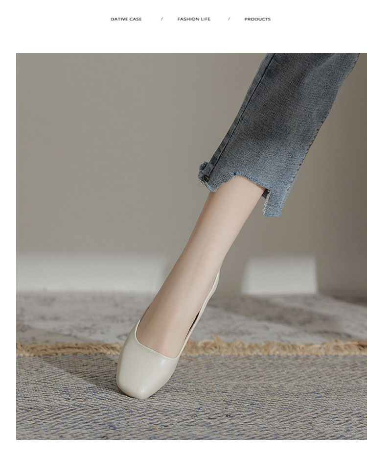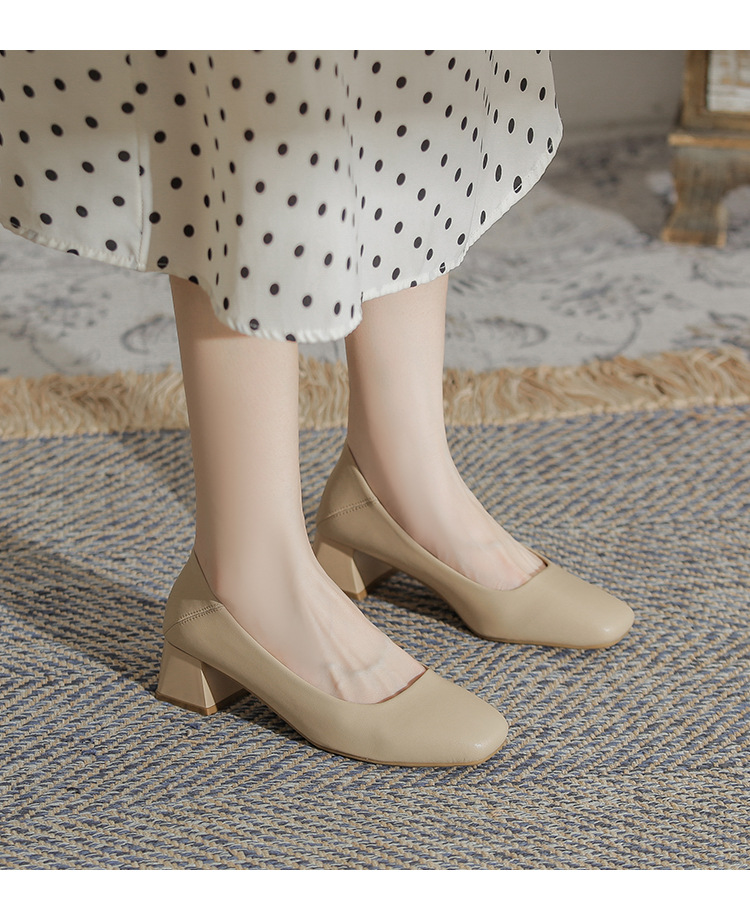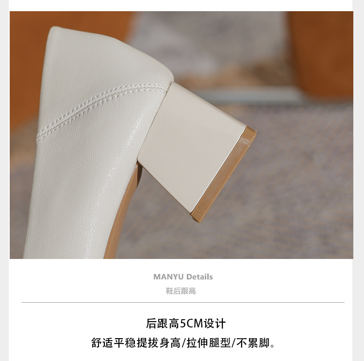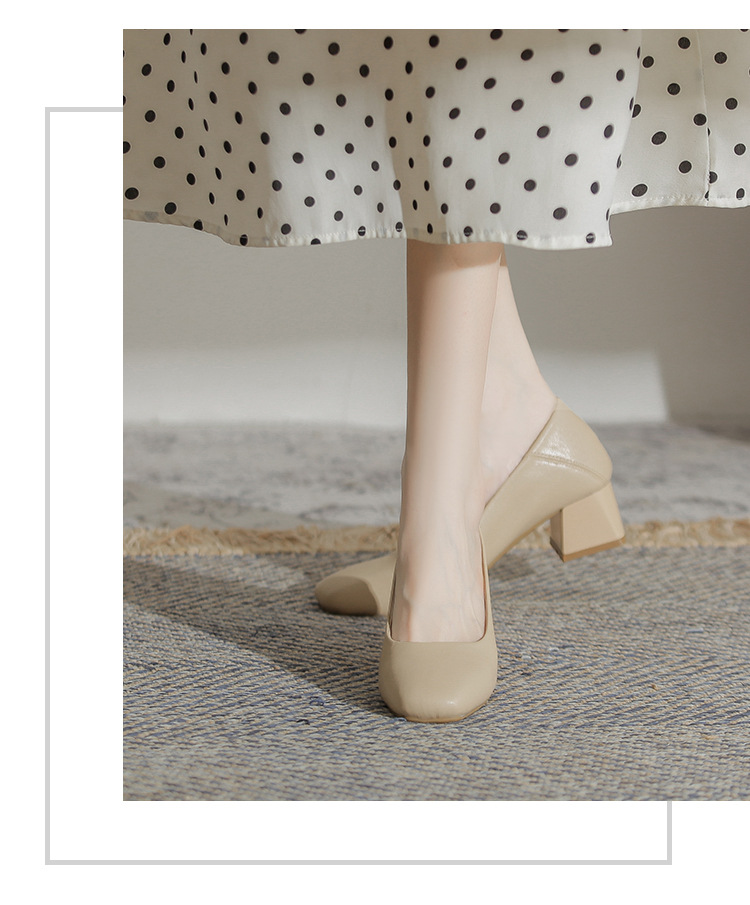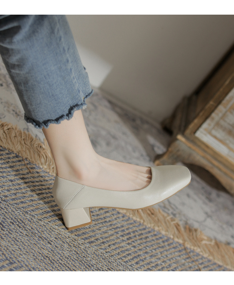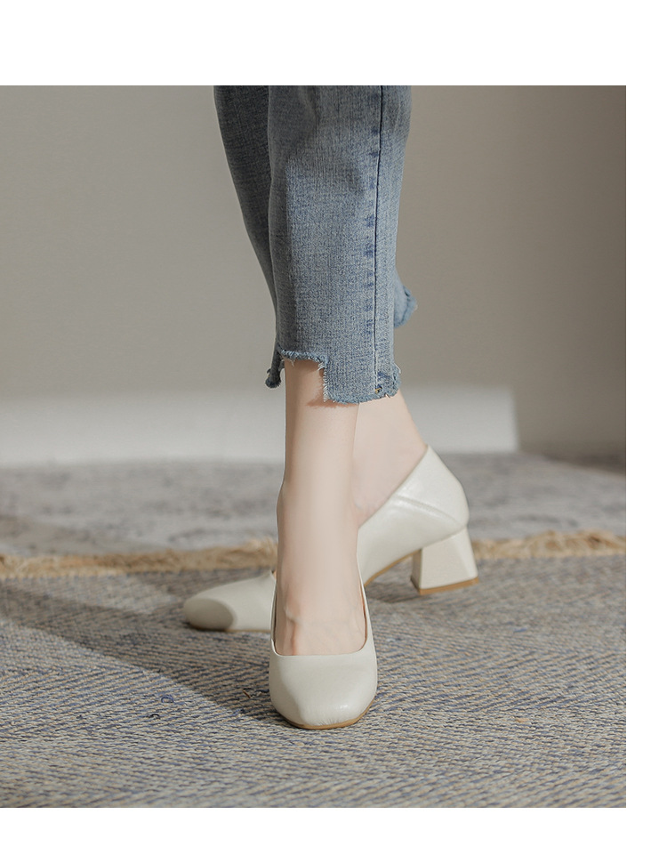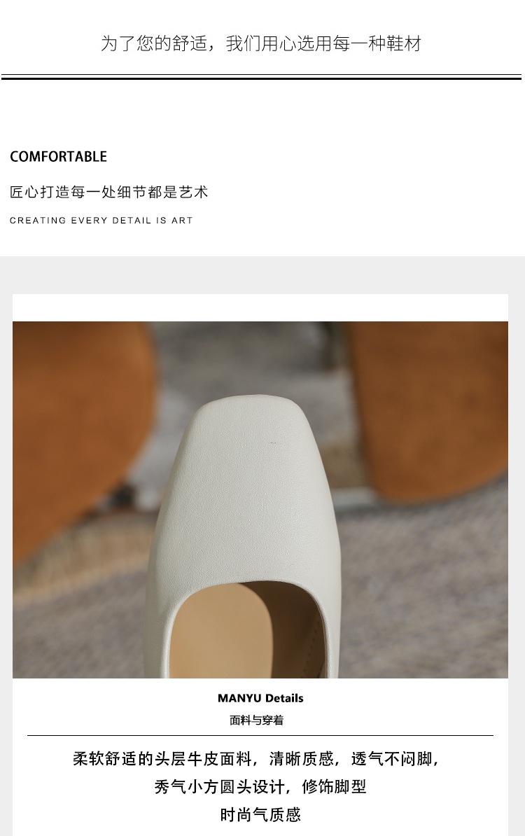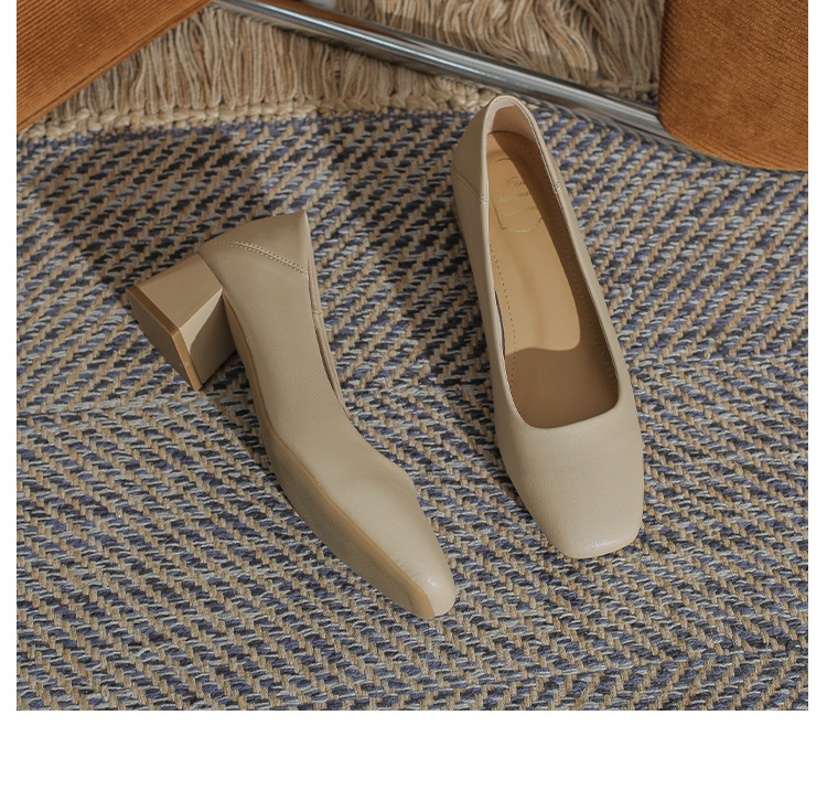 真皮法式单鞋女2025新款浅口方头粗跟黑色配旗袍工作鞋通勤鞋大码