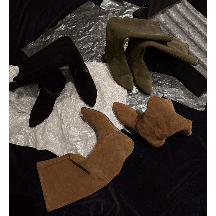 羊の皮を揉む馬の皮の中の西部の靴の女性の靴の秋冬の新型の小さい方の頭は足の太さの中と柔らかい皮の女性のショートブーツをかぶせます。