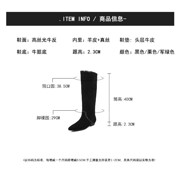牛皮擦色骑士靴女高筒长靴子冬新品真皮尖头粗中跟及膝靴女直筒靴