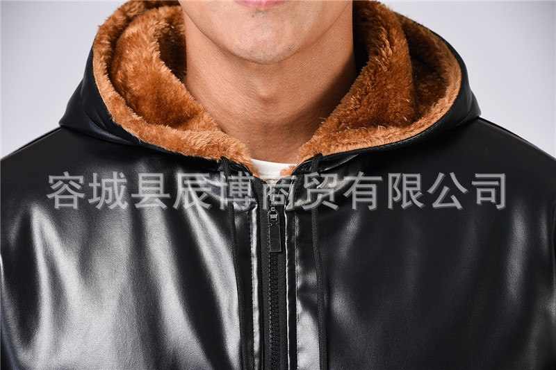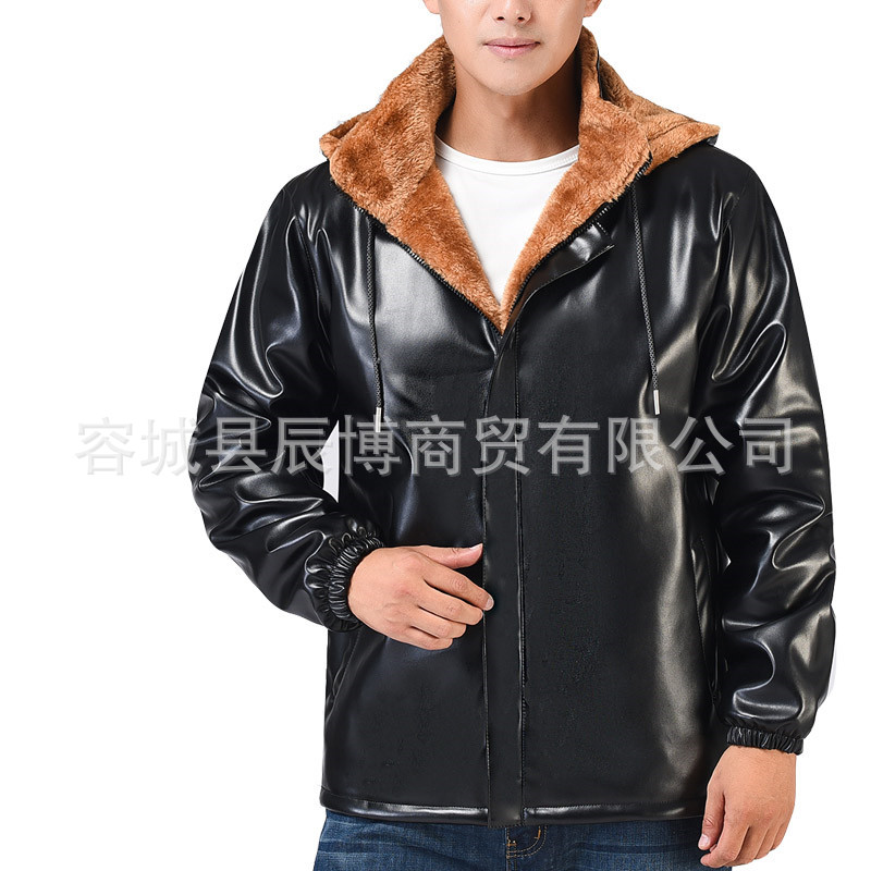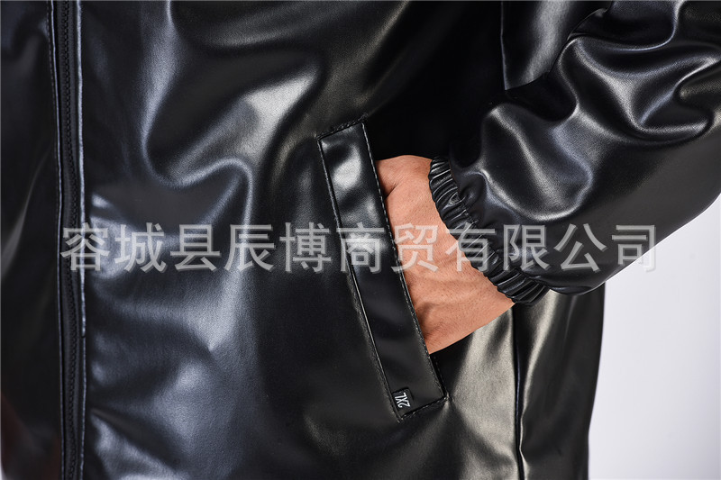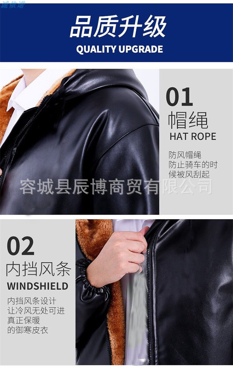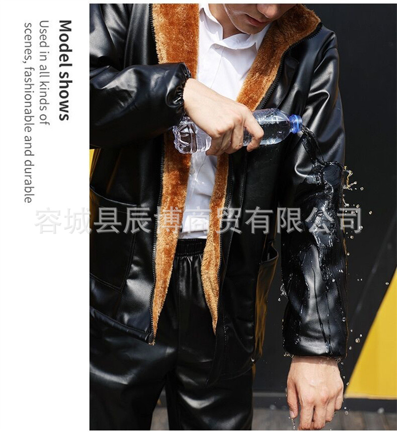 皮衣皮裤男工作服套装加绒加厚外卖机车挡风保暖立领棉衣连帽外套
