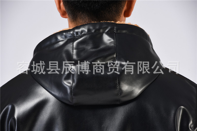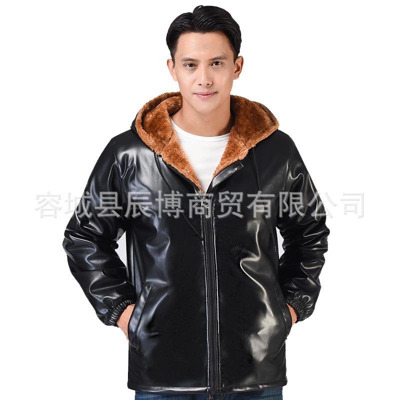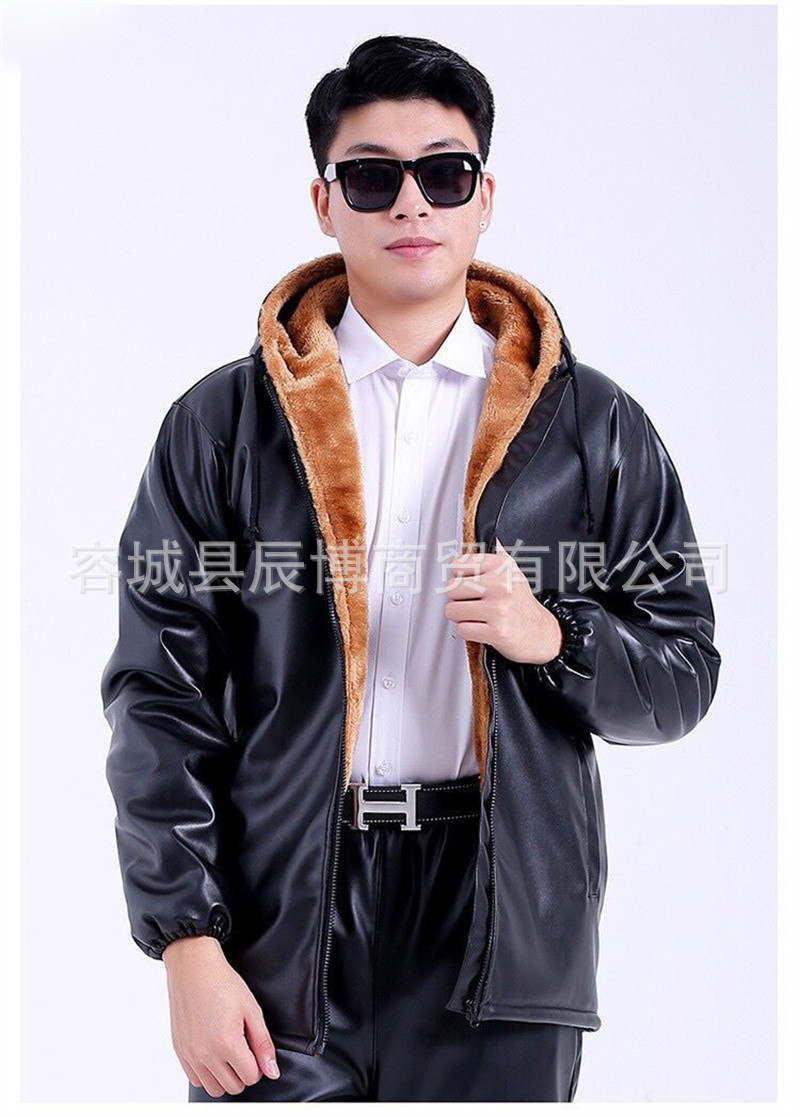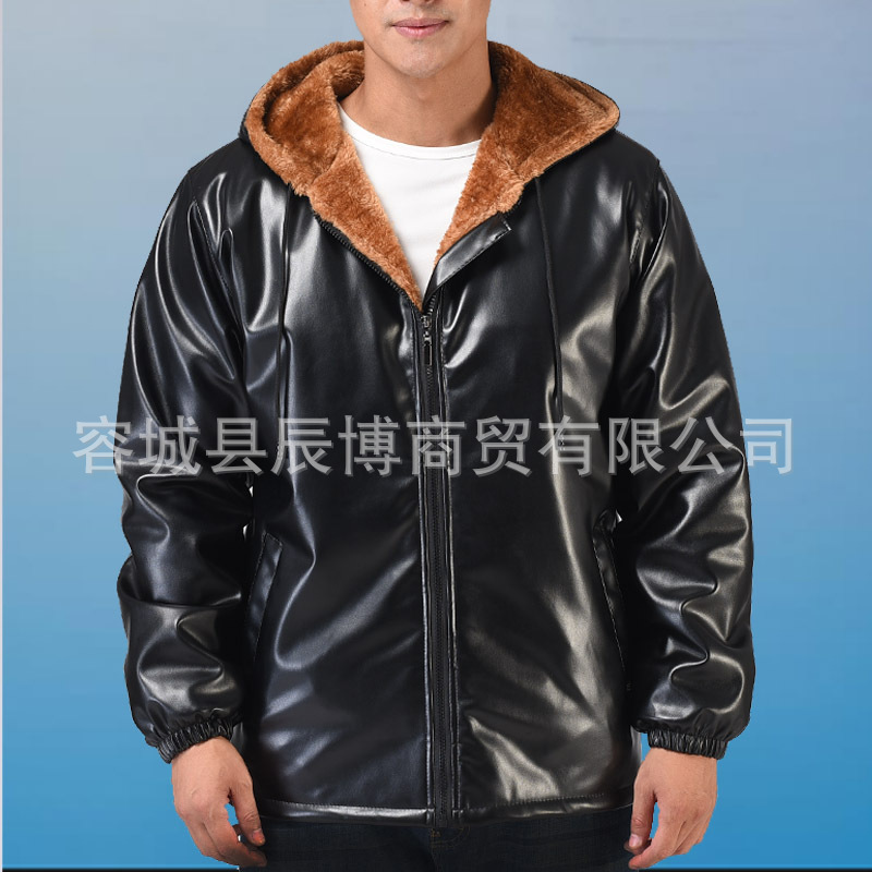 加绒加厚拆帽皮衣皮裤皮套装男保暖冷库工作服宽松防水皮棉衣外套