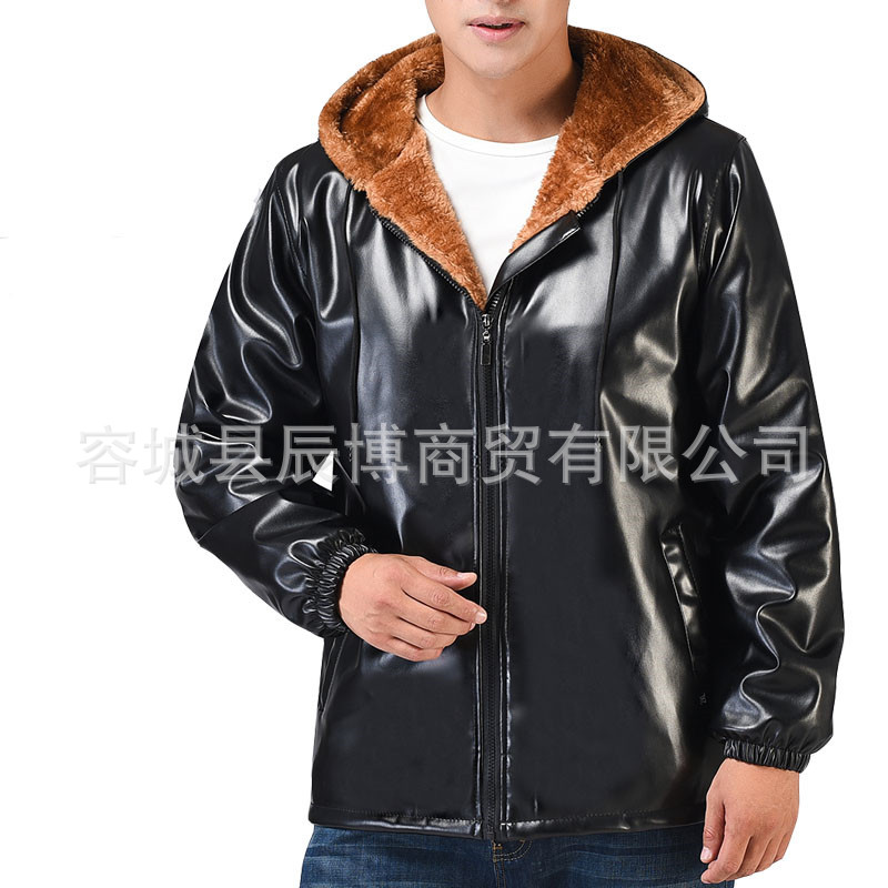 皮衣男外套冬季加绒加厚宽松防油防水外卖代驾骑行皮衣夹克上衣