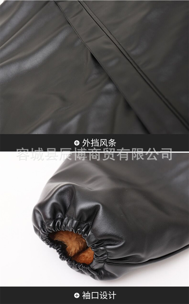 加绒加厚防风防水保暖摩托车骑行代驾外卖工作服男士皮衣皮裤套装