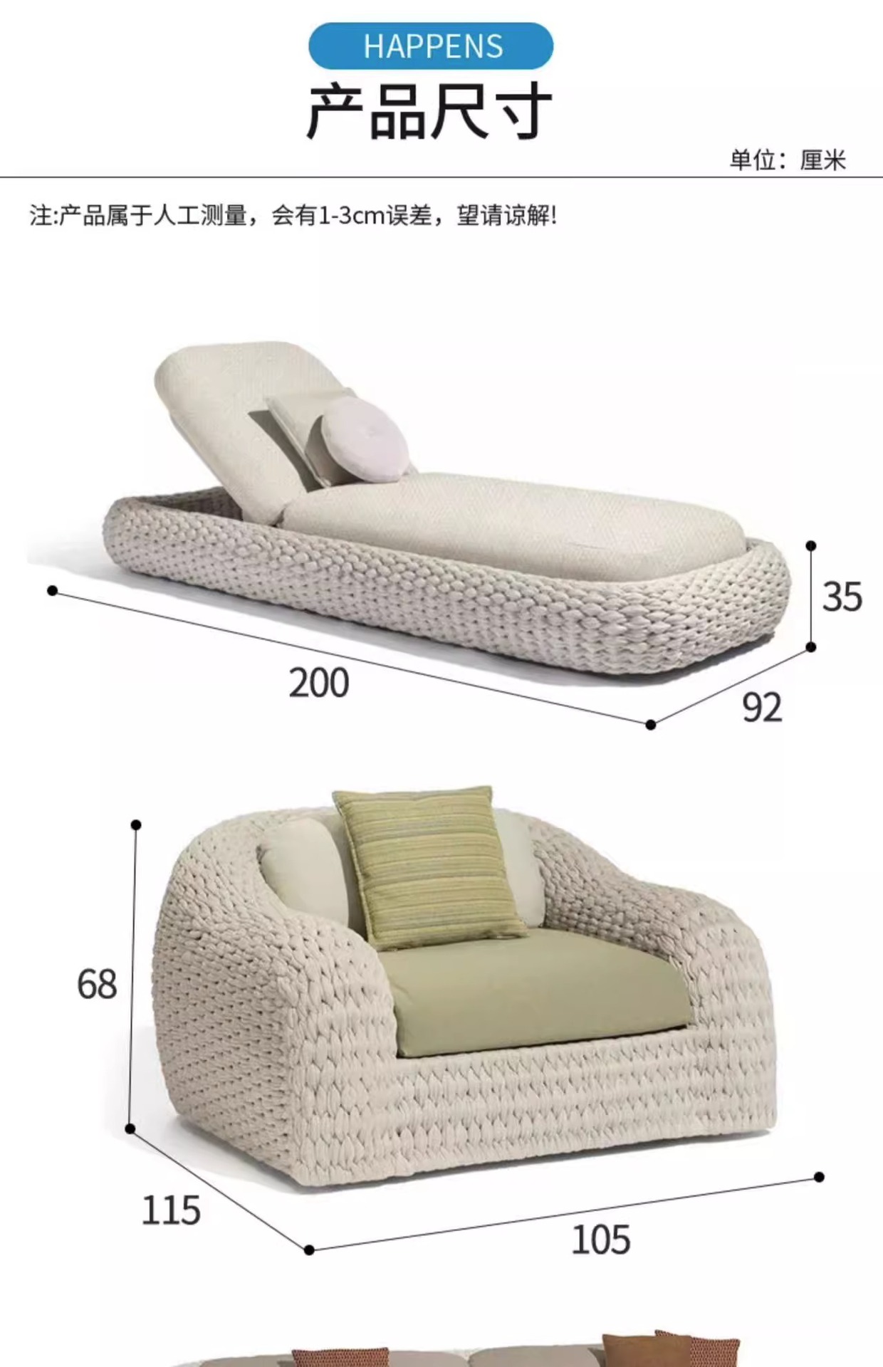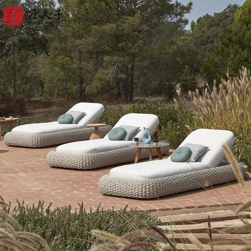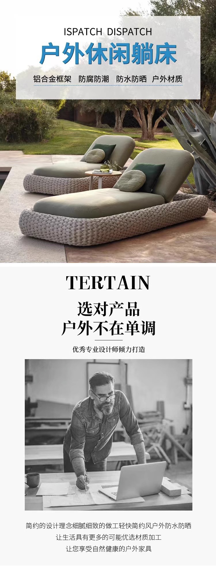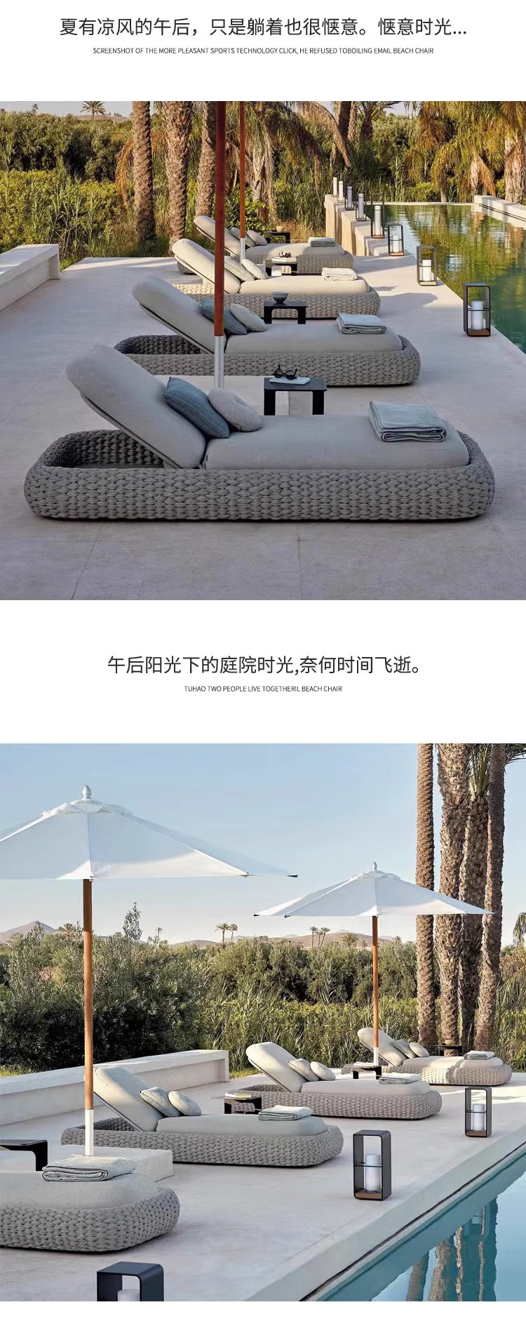 户外躺床绳编温泉酒店泳池躺椅日光床防水民宿室外海边藤编沙滩椅