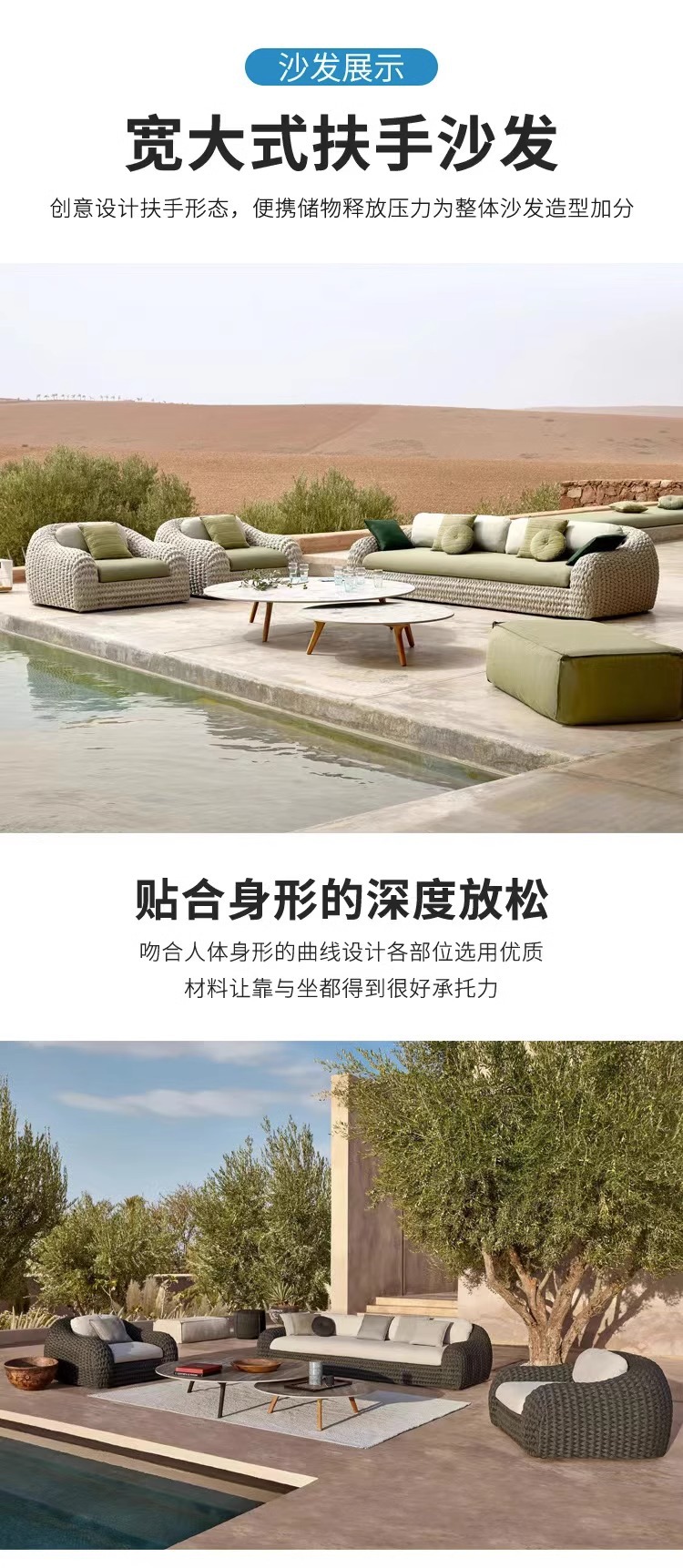 屋外ソファコーヒーテーブル組み合わせ営業部中庭ガーデンレジャー家具デザイナー屋外バルコニー防水日焼け止め