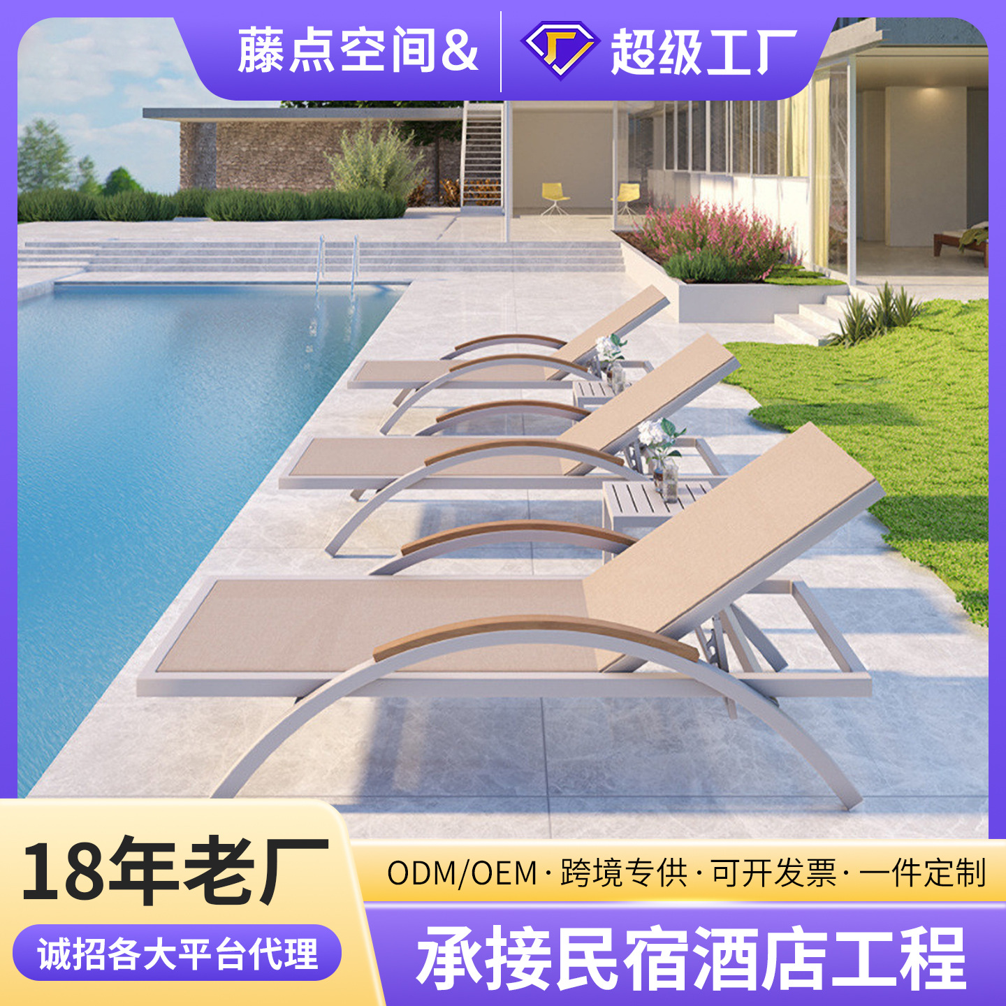 屋外露天プールリクライニングチェア防水日焼けホテル民宿リゾートビーチレジャーアルミ合金藤編ソファベッド