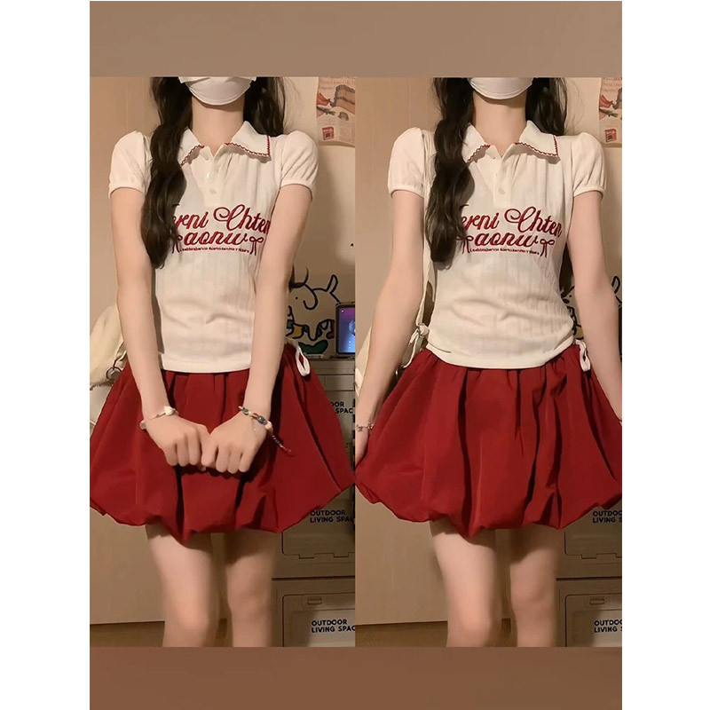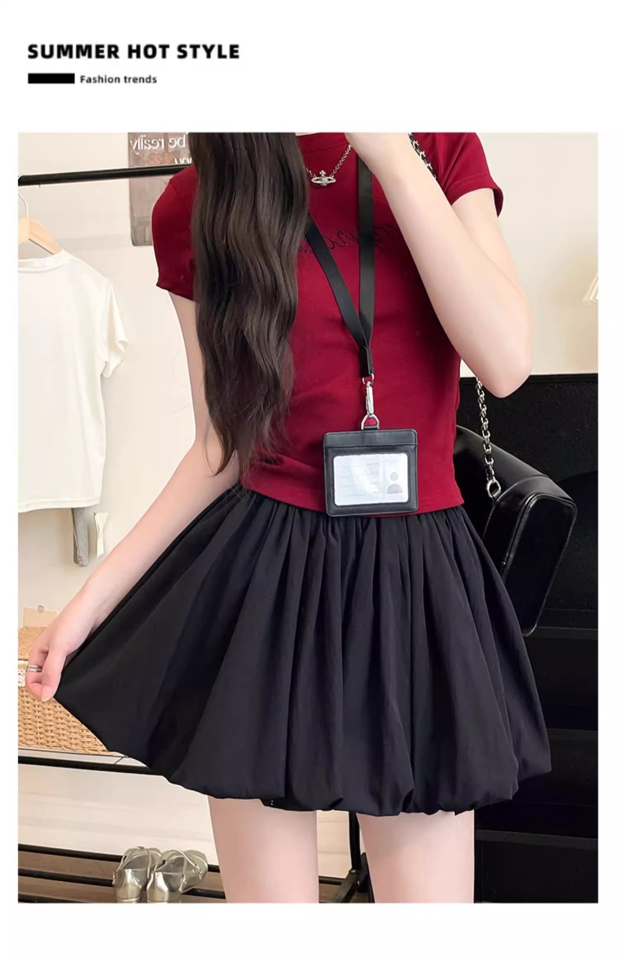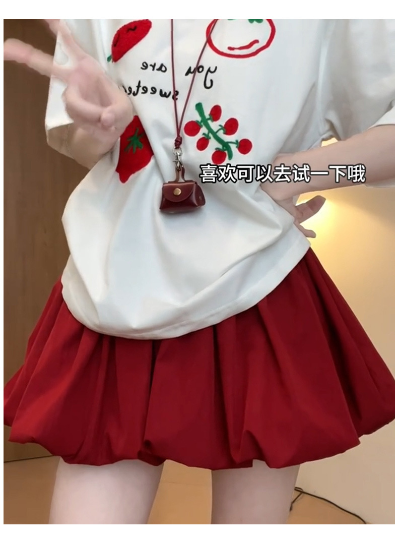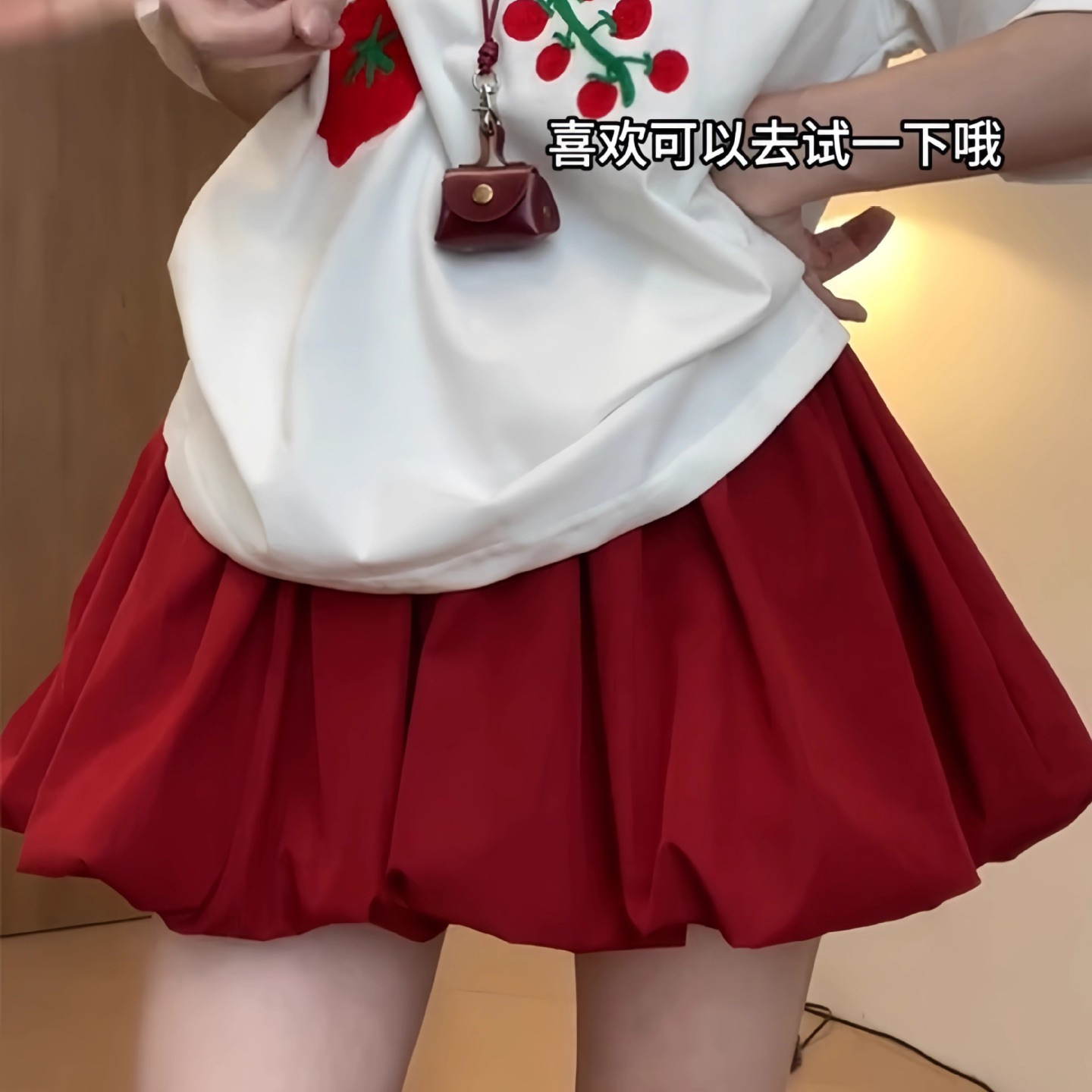 女性のための赤いつぼみショートスカート 2025 夏の新しい多用途ランタン A ライン露出防止小さなふわふわスカート