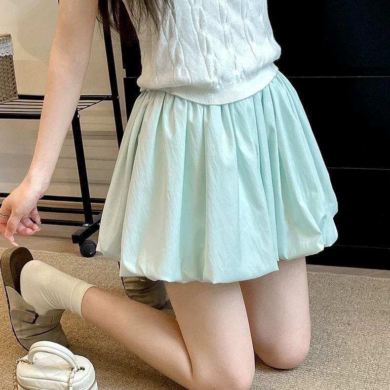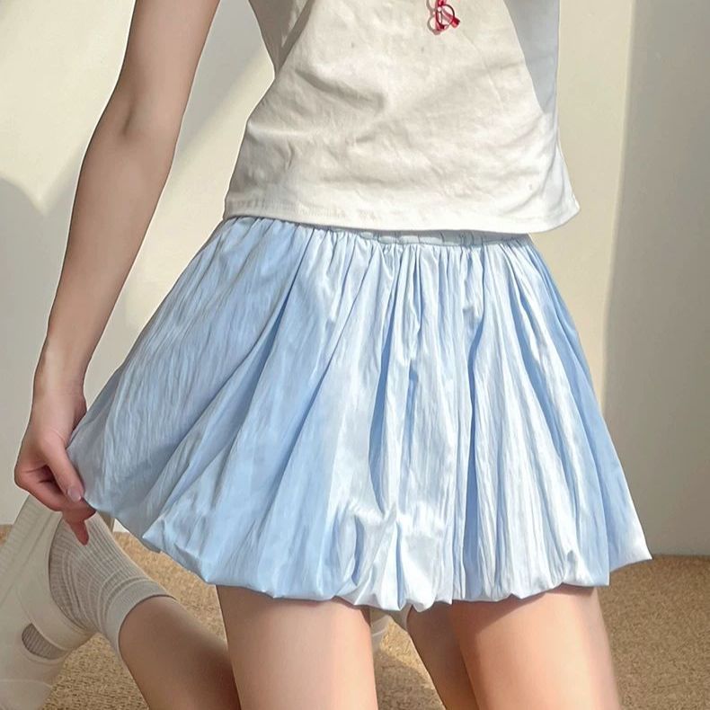 韩系蓬蓬裙松紧腰设计感云朵花苞裙A字短裙裤百搭半身裙裤女
