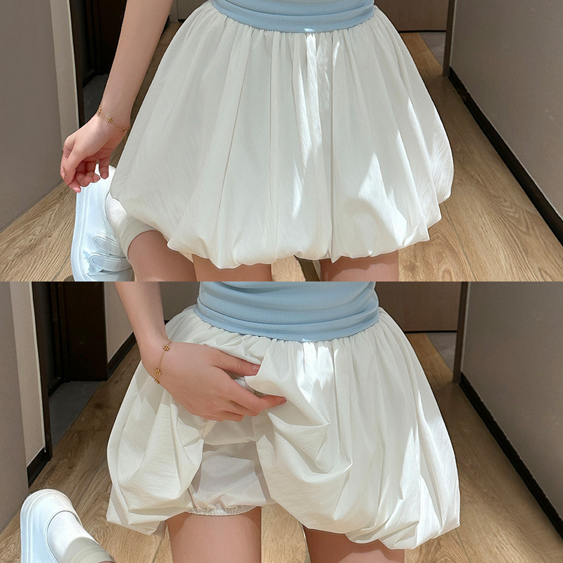 2025蓬蓬花苞裙裤女夏季薄款高腰A字灯笼裤防走光冰丝短裤
