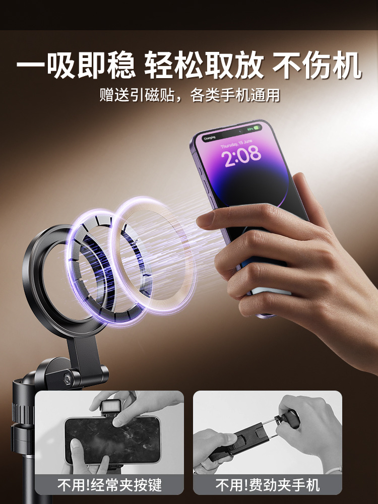 磁吸手机直播支架落地拍照专用Magsafe自拍支撑三脚架专业俯拍桌