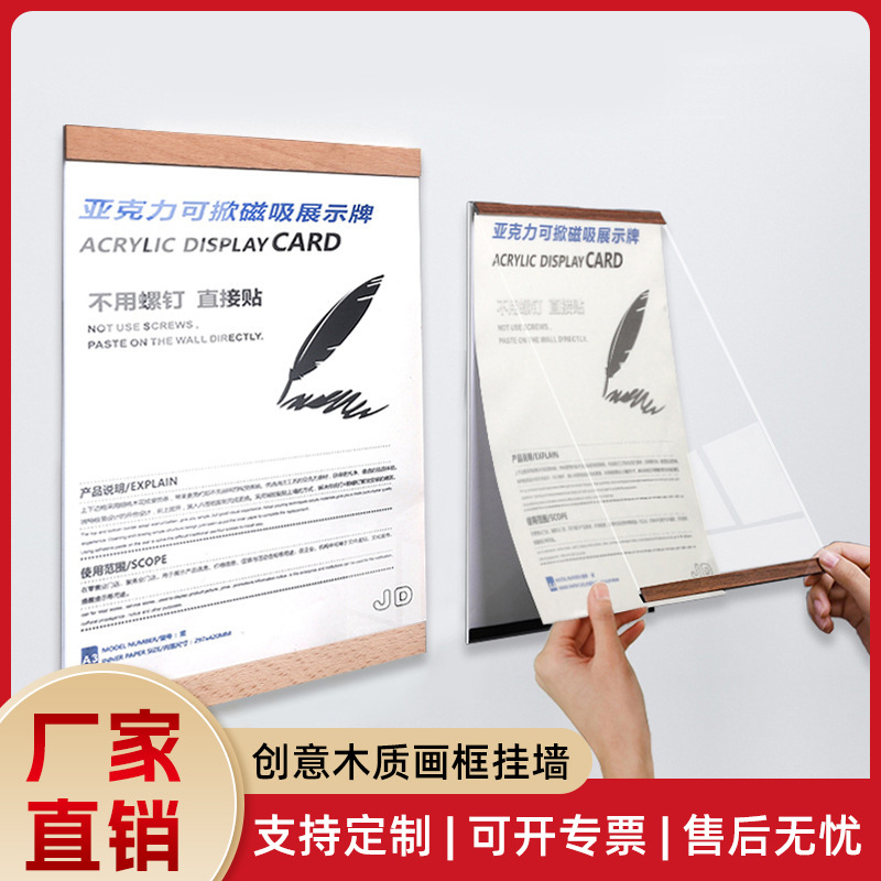アクリル台カードテーブルカード実木台サイン広告二次元コード展示カードa4立札メニューカード価格札振り子台
