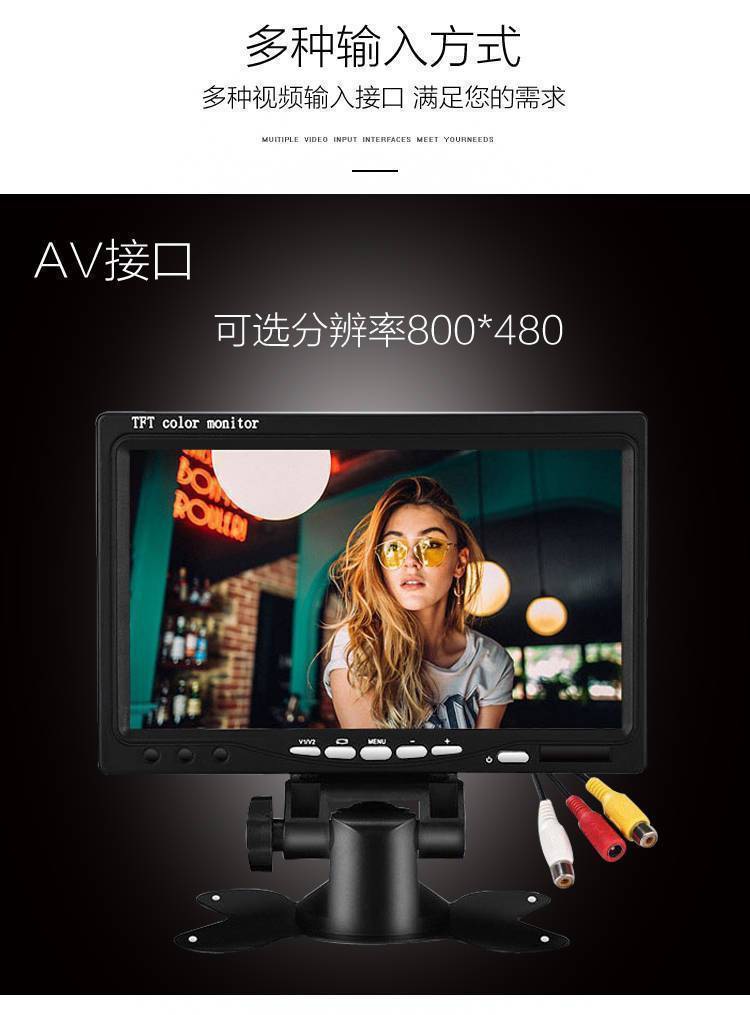 车载7寸液晶显示器 HDMI/VGA/AV大屏货车倒车影像高清显示屏
